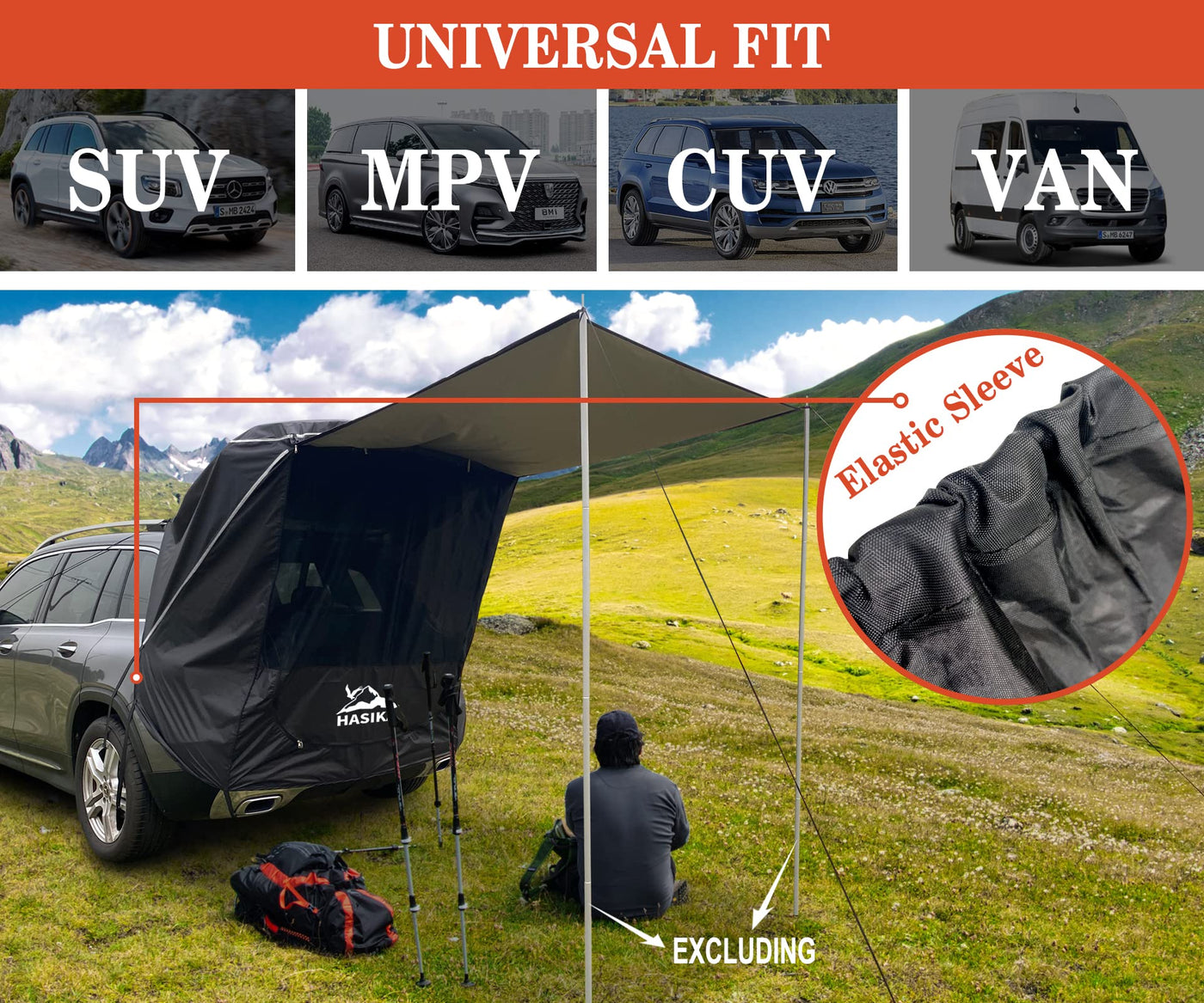 Hasika Suv Camping Tent Car Tailgate Shade Awning With Screen Net Midsize To Full Size Suv Van Waterproof 3000 Mm Upf 50+ Black