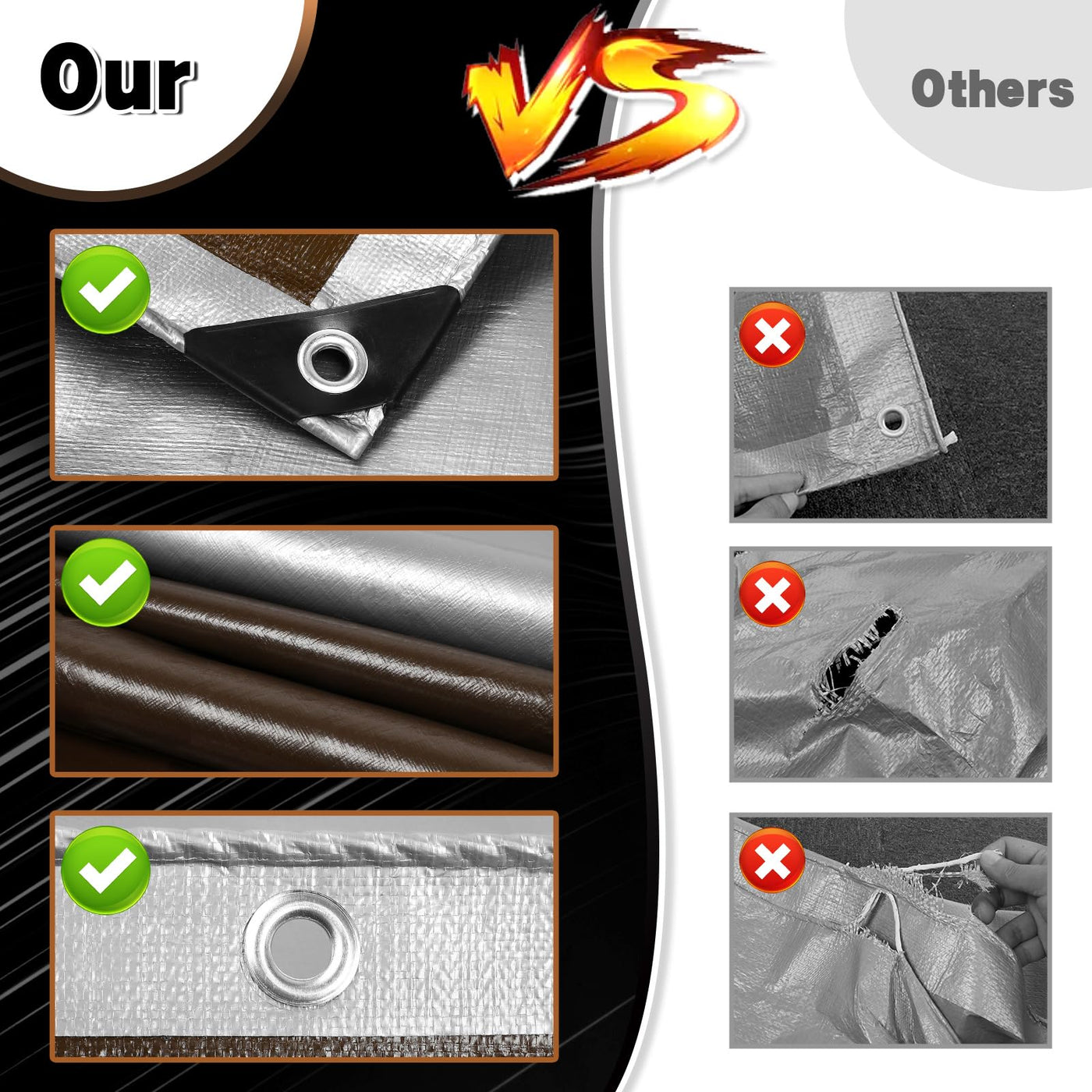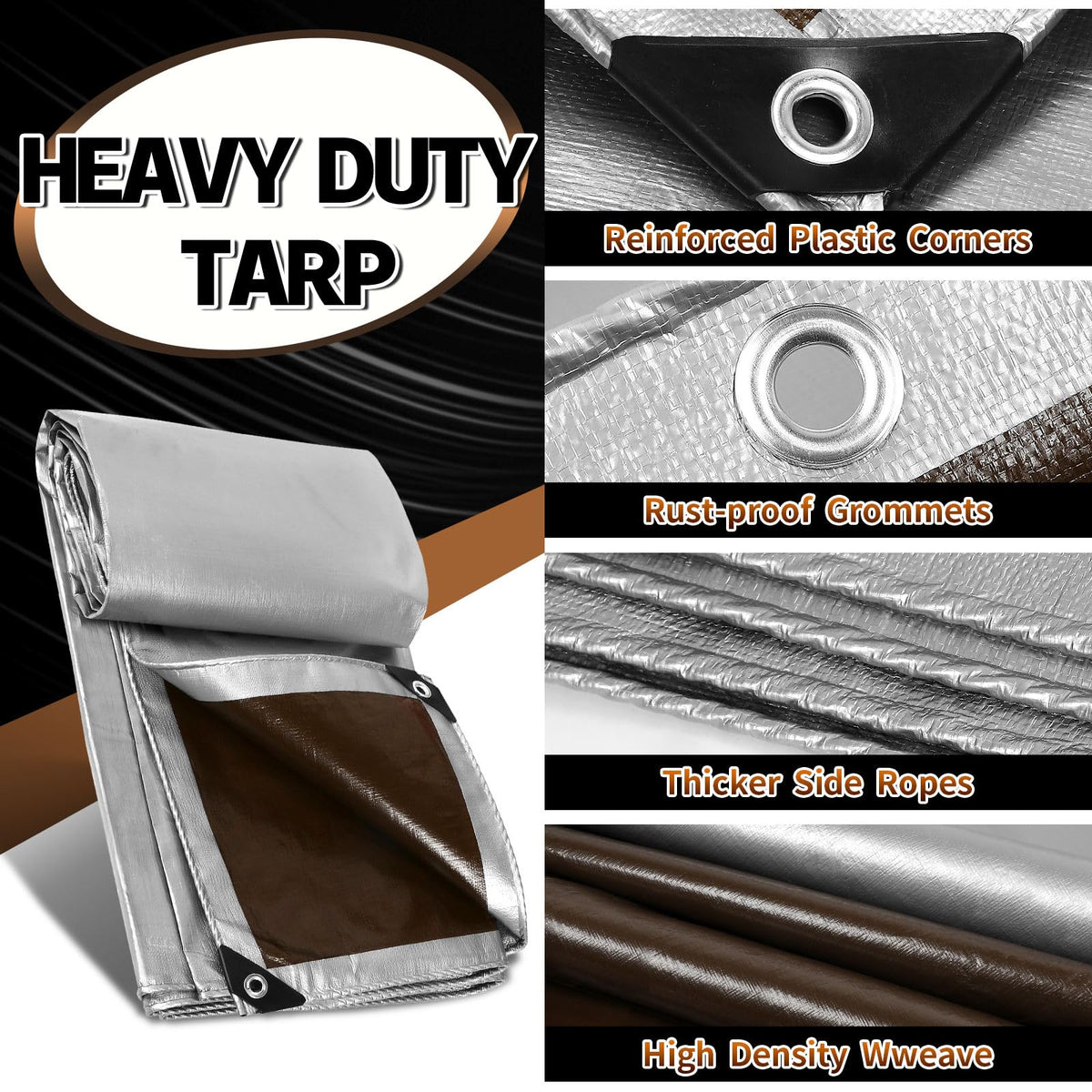 Heavy Duty Tarp 12 X 16 Ft, 10 Mil Large Waterproof Tarps, High Durability, Uv Resistant, Tear Resistant With Grommets Every 20 Inches For Outdoor (Silver/Brown - Reversible)
