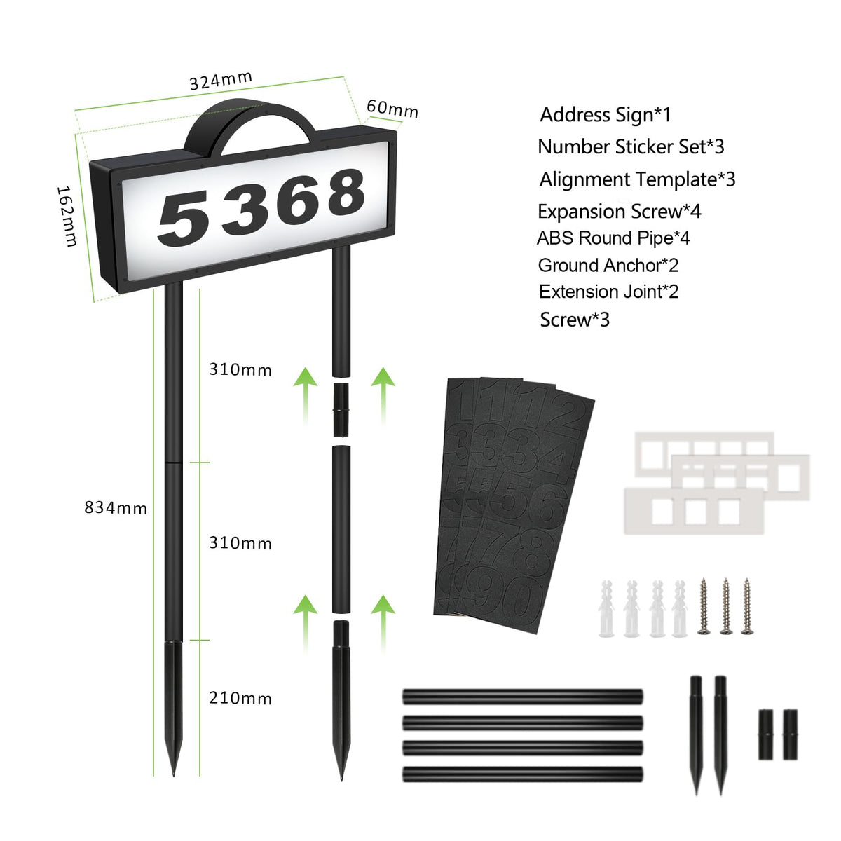 Q: Can I customize the house number on the solar address sign?A: Yes, the solar address sign comes with three sets of digital stickers (0-9) and an aligned template for up to five digits, allowing you to customize the house number easily.