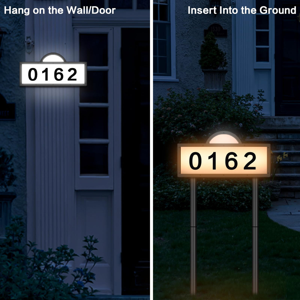 House Humbers for Outside Light Up, Solar Address Sign, Address Numbers for House, IP65 Waterproof, Cool/Warm White, House Number Sign Led Illuminated Wall Mounted/In Ground