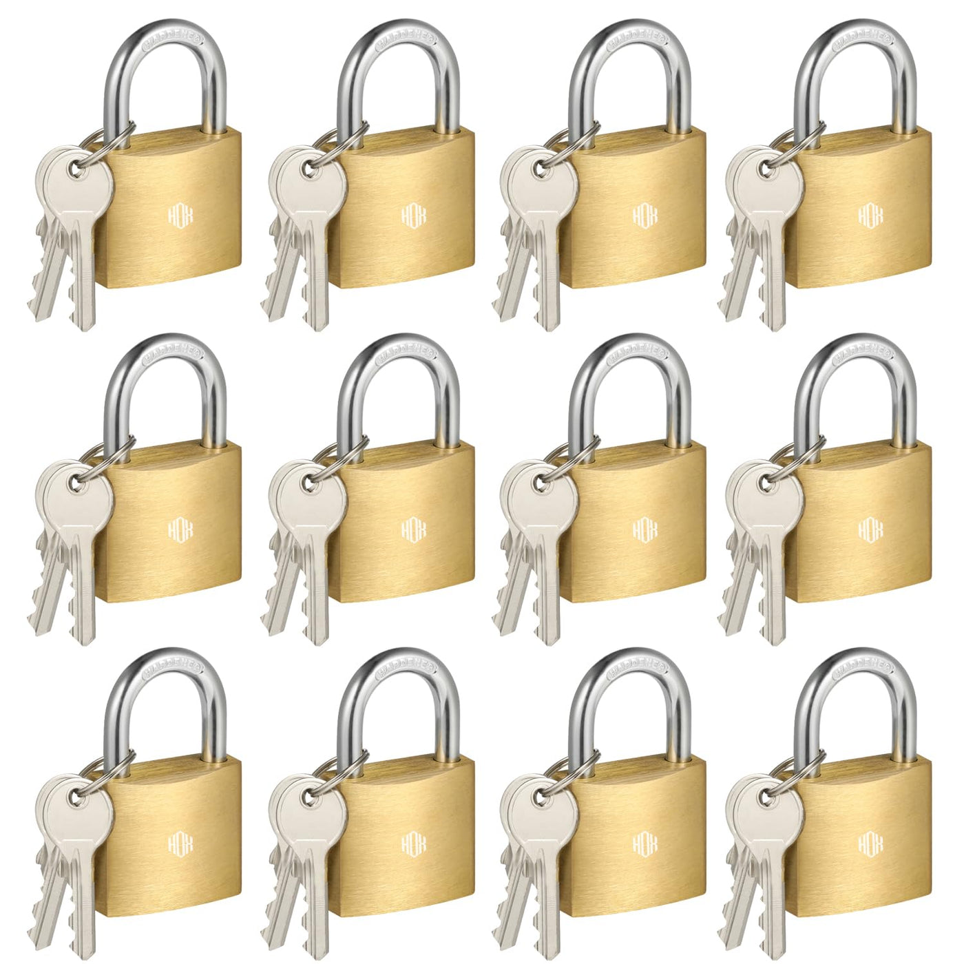 Hox 12-Pack Keyed Padlock, Waterproof And Rustproof, Solid Brass Lock With 1-1/4' Wide Body, Padlock With Keys For Storage Unit, Sheds, Garages And Fence