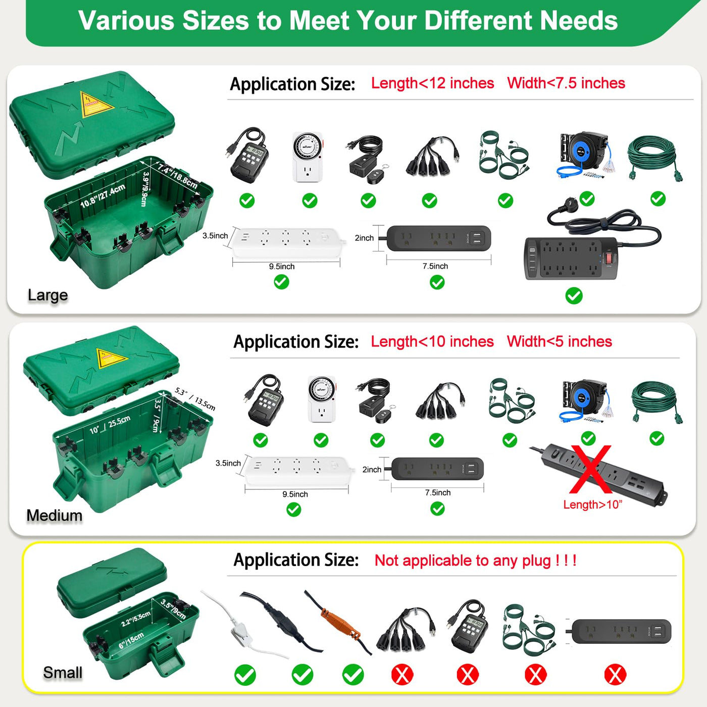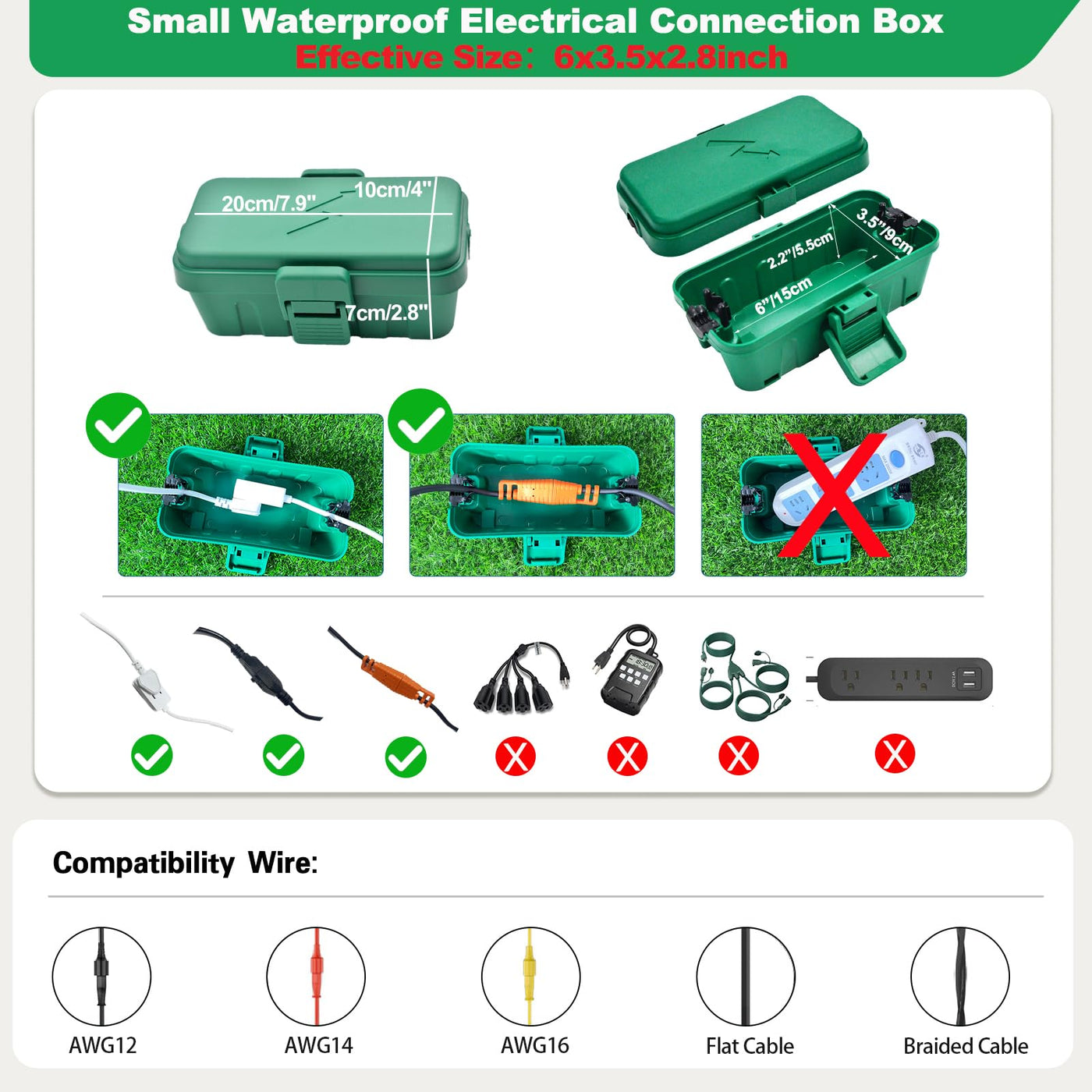 Hrensaw 3Pcs Small Weatherproof Electrical Connection Box(Inner 5.5 X 3 X 2.2Inch),Outdoor Electrical Box,Waterproof Extension Cord Covers For Plug,Extension Cables,Holiday Lights,Green