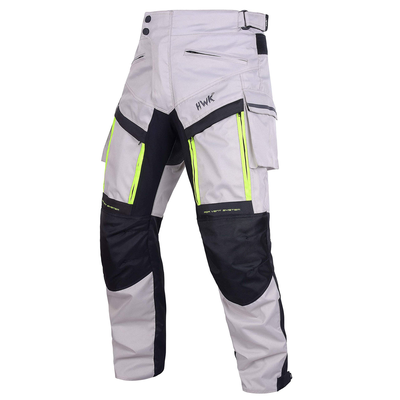 Hwk Motorcycle Pants Cargo Pants Work Pants For Men Dirt Bike Adventure Dualsport Racing Riding Rain Waterproof Pant Hi-Vis 4-Season Armored All-Purpose (Waist32''-34'' Inseam34'') Silver