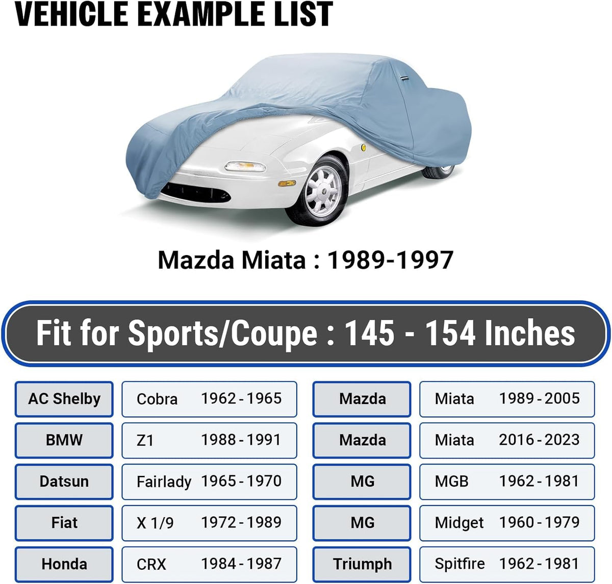 iCarCover 18-Layer Car Cover Waterproof All Weather, Premium Quality Car Covers for Automobiles, UV Protection, Miata MX-5, MGB