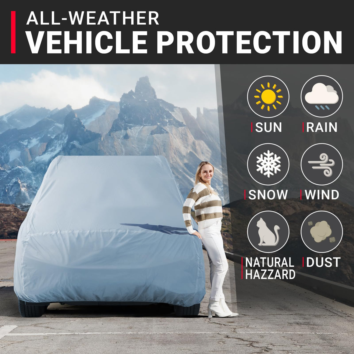 iCarCover 30-Layer Premium SUV Car Cover Waterproof All Weather | Rain Snow UV Sun Protection Full Car Covers | Jeep CJ-5, Wrang
