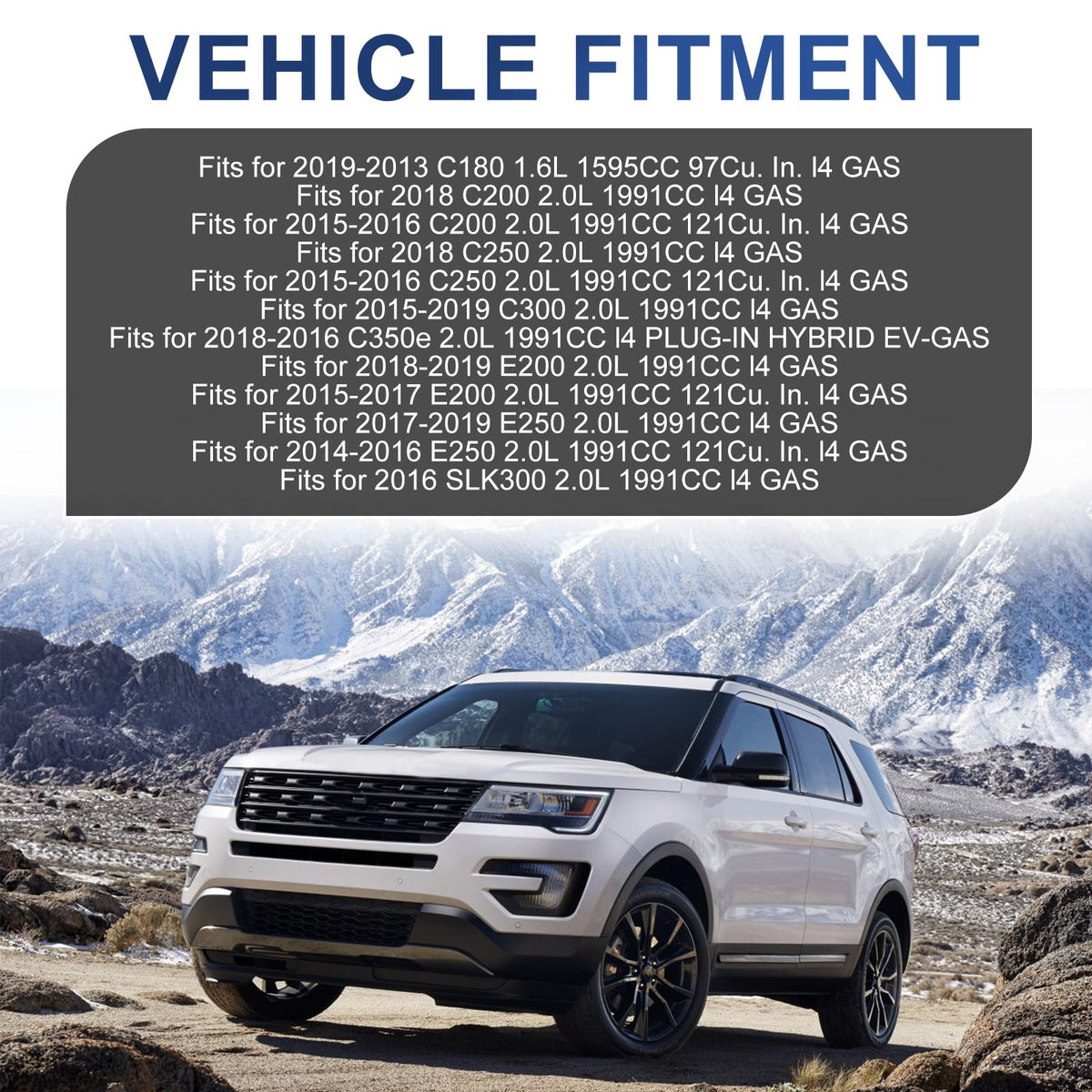 This Engine Water Pump Replacement With: Fits For 2019-2013 C180 1.6L 1595Cc 97Cu. In. L4 Gas Fits For 2018 C200 2.0L 1991Cc L4 Gas Fits For 2016 C200 2.0L 1991Cc 121Cu. In. L4 Gas Fits For 2015 C200 2.0L 1991Cc 121Cu. In. L4 Gas Fits For 2018 C250 2.0L 1991Cc L4 Gas Fits For 2016 C250 2.0L 1991Cc 121Cu. In. L4 Gas Fits For 2015 C250 2.0L 1991Cc 121Cu. In. L4 Gas Fits For 2019 C300 2.0L 1991Cc L4 Gas Fits For 2018 C300 2.0L 1991Cc L4 Gas Fits For 2017 C300 2.0L 1991Cc L4 Gas Fits For 2016 C300 2.0L 1991Cc L4 Gas Fits For 2015 C300 2.0L 1991Cc L4 Gas Fits For 2018-2016 C350E 2.0L 1991Cc L4 Plug-In Hybrid Ev-Gas Fits For 2019 E200 2.0L 1991Cc L4 Gas Fits For 2018 E200 2.0L 1991Cc L4 Gas Fits For 2017 E200 2.0L 1991Cc 121Cu. In. L4 Gas Fits For 2016 E200 2.0L 1991Cc 121Cu. In. L4 Gas Fits For 2015 E200 2.0L 1991Cc 121Cu. In. L4 Gas Fits For 2019 E250 2.0L 1991Cc L4 Gas Fits For 2018 E250 2.0L 1991Cc L4 Gas Fits For 2017 E250 2.0L 1991Cc L4 Gas Fits For 2016 E250 2.0L 1991Cc 121Cu. In. L4 Gas Fits For 2015 E250 2.0L 1991Cc 121Cu. In. L4 Gas Fits For 2014 E250 2.0L 1991Cc 121Cu. In. L4 Gas Fits For 2016 Slk300 2.0L 1991Cc L4 Gas