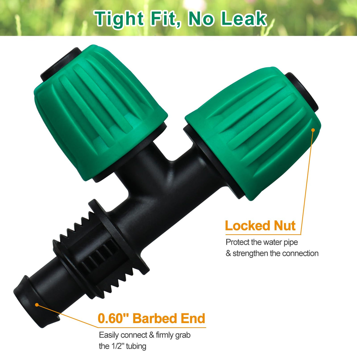 These 12 pack 1/2' barbed lock drip irrigation parts are compatible with most generic 1/2 inch tubing or drip lines, can be applied for garden, greenhouse, flower bed, patio and lawn, and other agricultural watering system. It is perfect for DIY irrigation system, you can create your own irrigation drip system with these drip connectors.