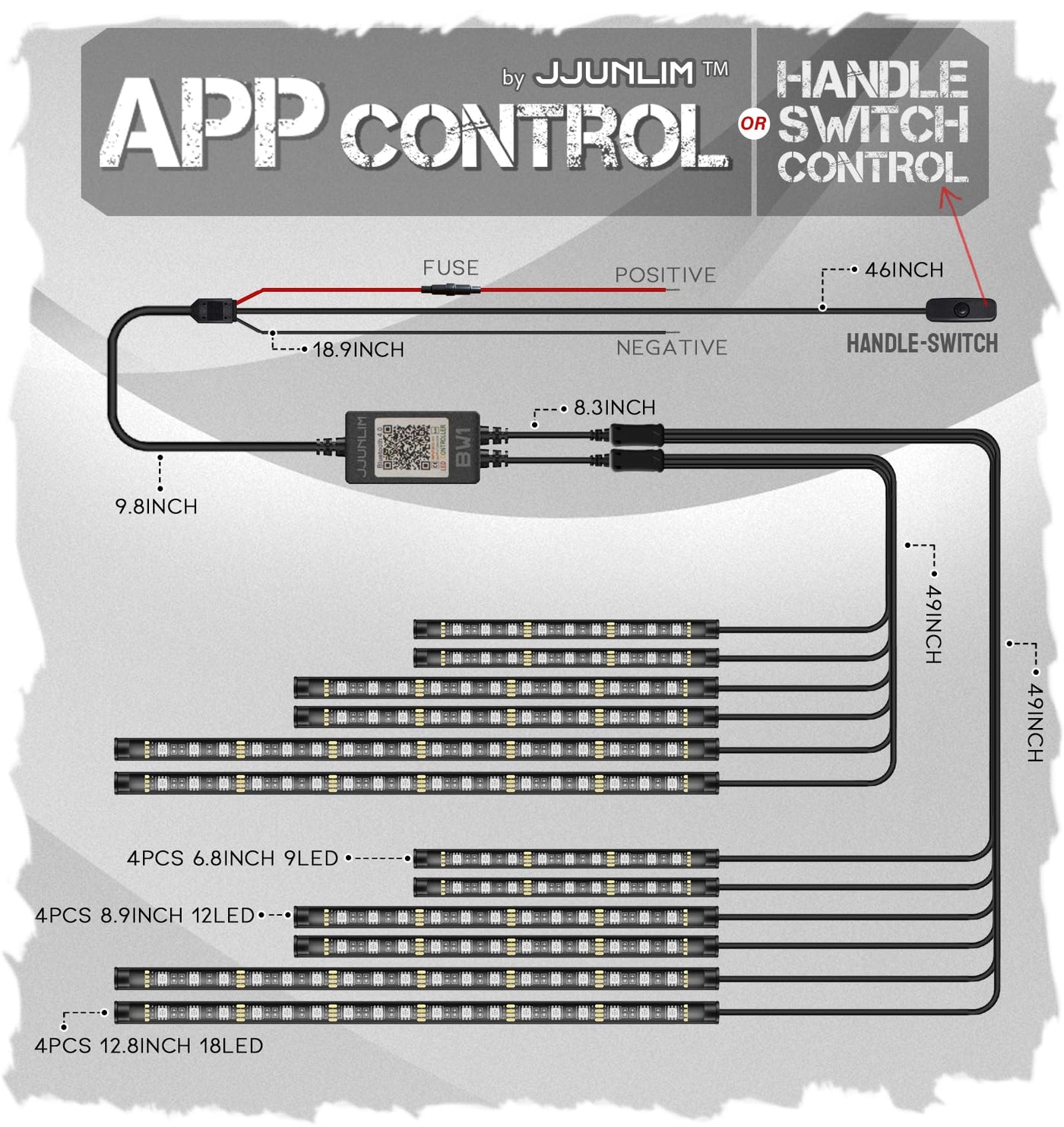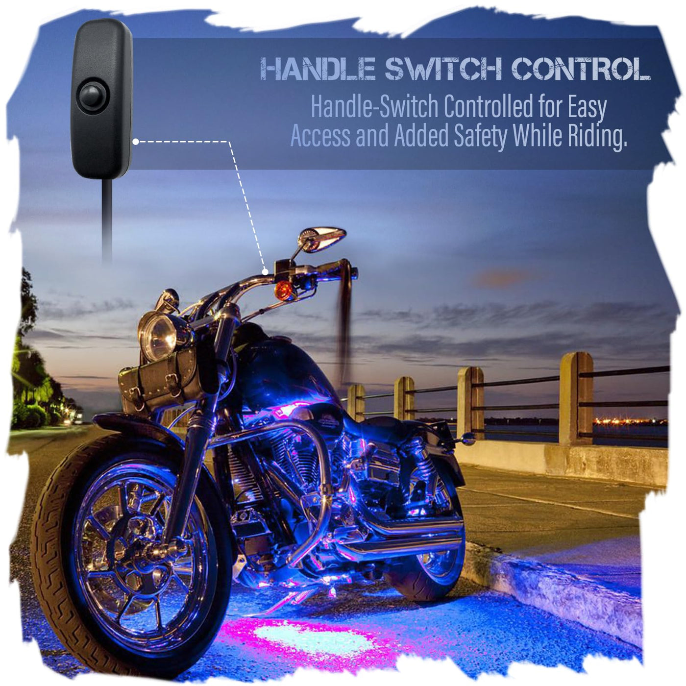 Q: How can I control the LED lights on my motorcycle?A: You can control the JJunLiM LED lights using the dedicated mobile app, which offers access to 16 million colors and 28 lighting modes, as well as a handle-switch for quick on/off control while riding.