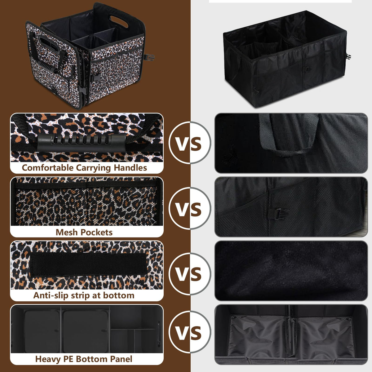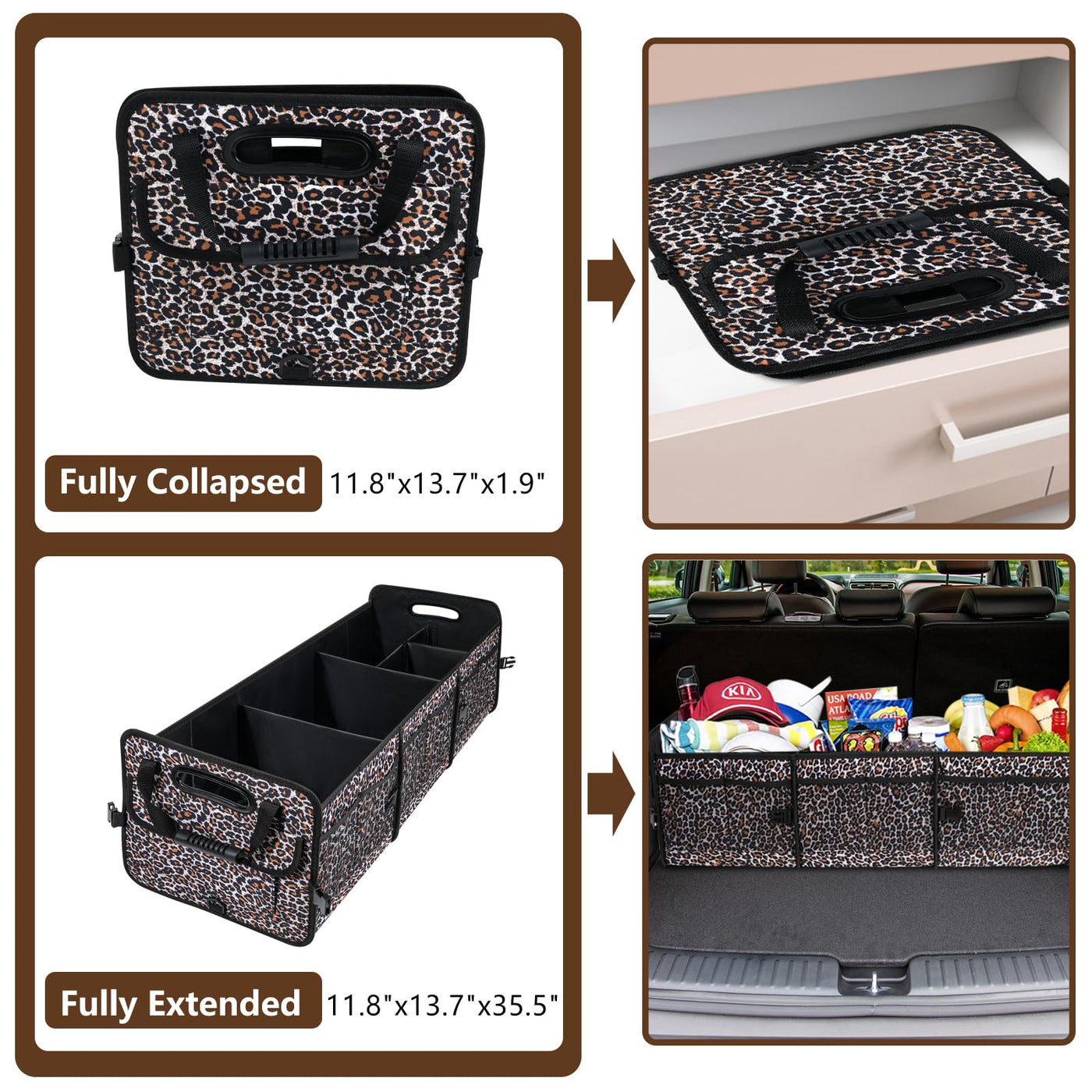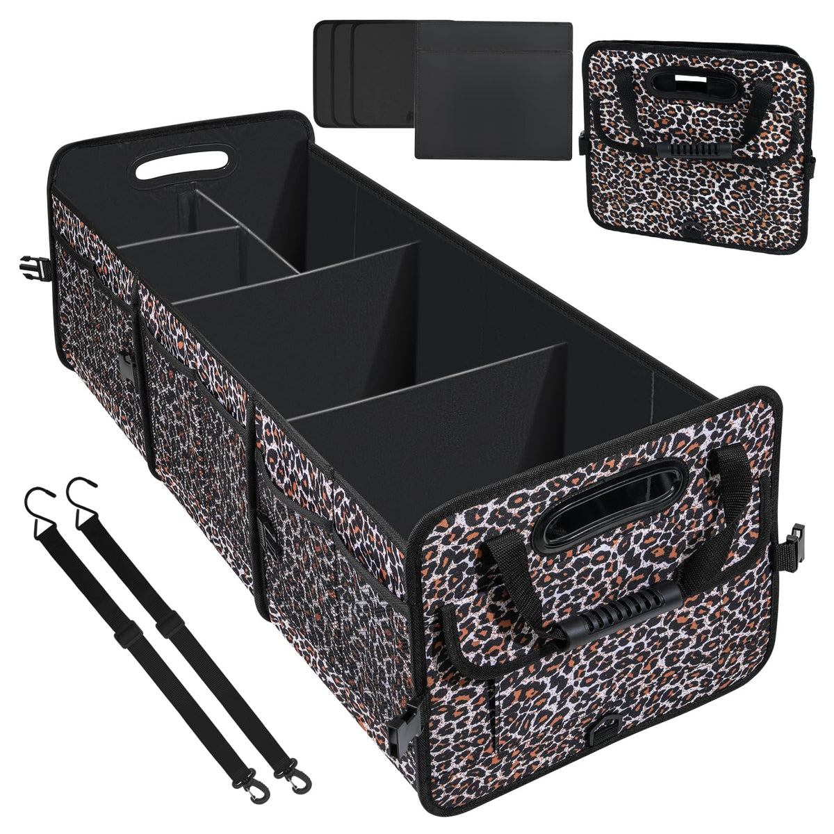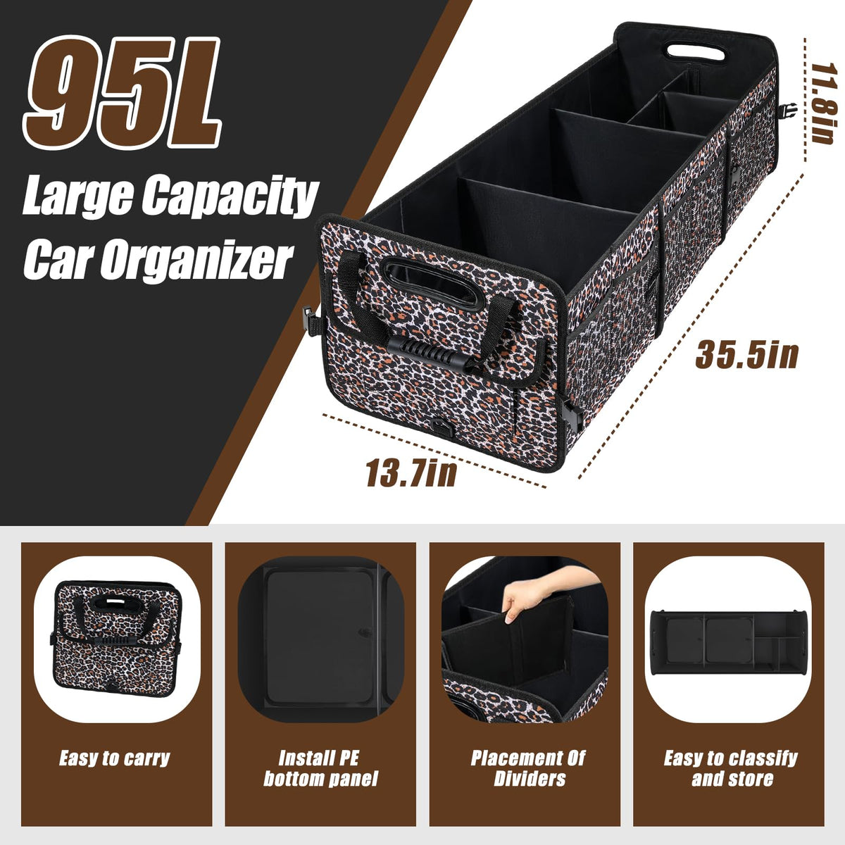 Leopard Print Trunk Organizer - 95L Large Capacity, Non-Slip Bottom, Waterproof, Portable Car Storage For Suv, Truck, Sedan