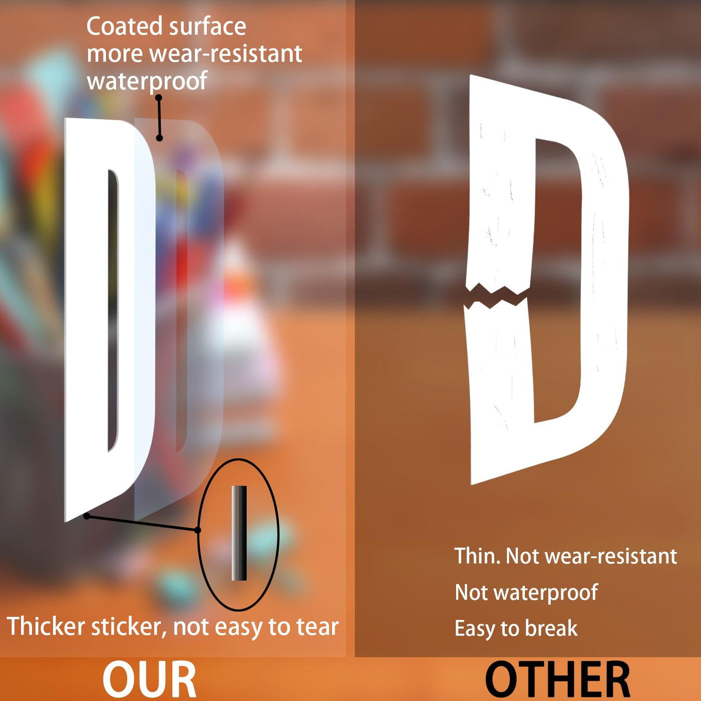 These letter stickers are perfect for decorating and labeling various surfaces such as mailboxes, doors, walls, glass, and vehicles. Whether you're adding house numbers to your mailbox, creating personalized wall art, or labeling storage bins, these durable stickers are designed to meet your needs effortlessly. They're especially great for DIY projects like crafts, home decor, and signage, helping you create a unique and personalized space. Use them to customize party decorations, label jars and containers in the kitchen, or even personalize school supplies and laptops. Suitable for both indoor and outdoor use, these letter stickers maintain vibrant colors without fading, bringing more creativity and fun into your life.
