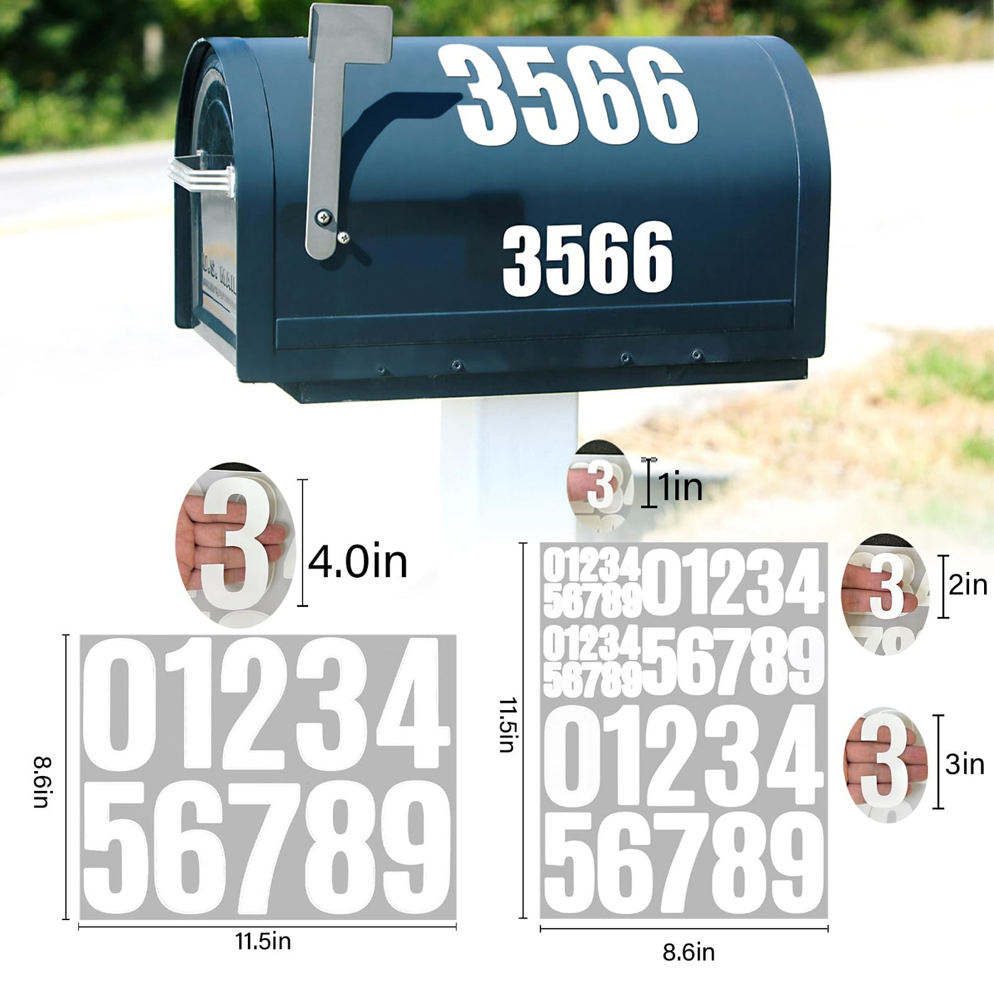 Llewyn Vinyl Mailbox Number Stickers - 250 Pcs 10 Sheets Self Adhesive Waterproof Decals For Mailbox,Bulletin Board,Diy,Window,Door,Bike,Car,Laptop,Scrapbook,Truck,Water Bottle(1In&2In&3In&4In White)