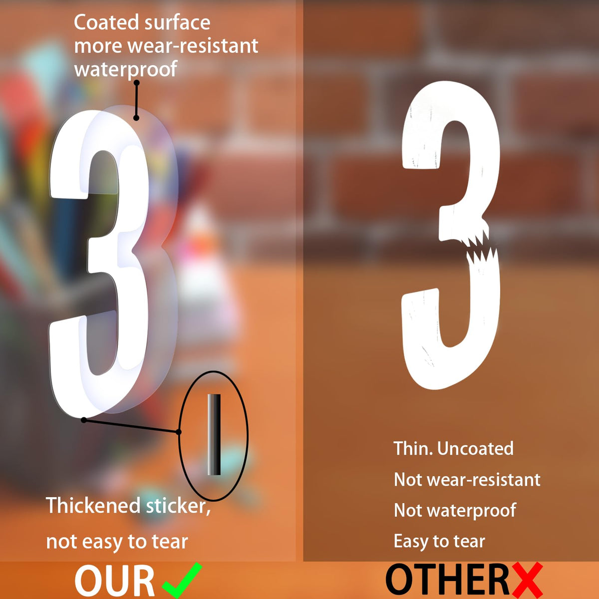 Q: Are the number stickers suitable for outdoor use?A: Yes, these number stickers are made from high-quality vinyl material that is waterproof and durable, ensuring they can withstand outdoor conditions without peeling or fading.