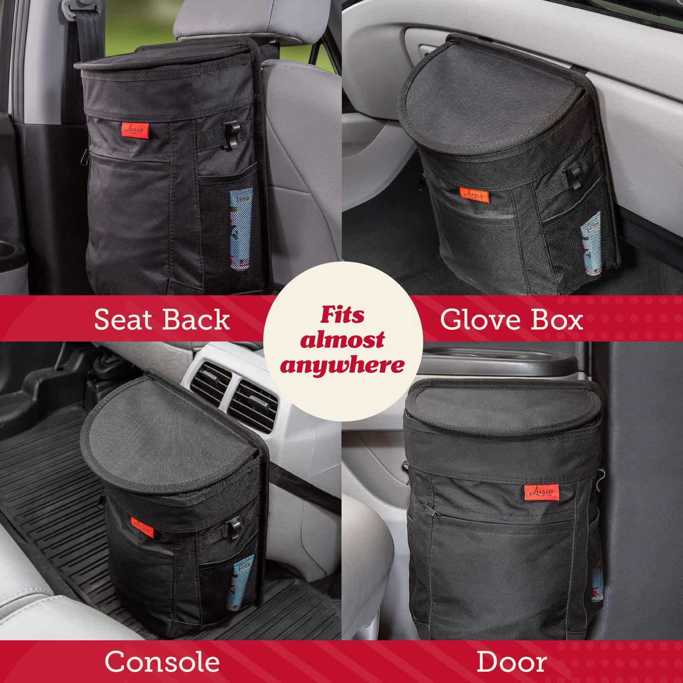 Keep Your Car Clean: Tidy Up Your Ride With This Spacious Car Trashcan. This Car Can Trash Bag Is Great For Holding Wrappers And Messes, And It Even Has Pockets For Extra Storage. This Spill-Proof Car Trash Bin Is A Must-Have Car Accessory For Men And Women, Fitting Perfectly In Any Automotive Interior | Durable And Waterproof: Made From Rugged Oxford Material, This Trash Can For Cars Is Super Easy To Clean And Built To Last. The Flip-Top Lid Keeps The Vehicle Trash Can Hidden And Odors Sealed In, Making It Ideal For Car Accessories For Women And Truck Accessories For Men Who Value Freshness | Mess-Free Design: This Garbage Can For Car Has A Removable, Leakproof Liner, Making Spill Clean-Up A Snap. Just Take Out The Liner, Not The Whole Can. Hooks Allow Extra Disposable Bags For Peace Of Mind. It'S An Essential Trash Can For Car Or Car Garbage Can For Any Auto Garbage Solution | Perfect Road Trip Buddy: Whether On A Long Drive Or Commuting, This Car Trash Bag Hanging In Your Vehicle Is Your Best Friend. This Car Trash Can For Back Seat And Front Seat Features Mesh Side Pockets And A Big Front Zipper Pocket For Travel Essentials. Hang It In The Back Seat Or Over The Headrest For Easy Access | Lusso Gear Quality: Lusso Gear Is Dedicated To Enhancing Your Drive. This Trash Can Fits In Both Front And Back Seats, Blending Seamlessly With Your Truck Accessories. Keep Your Car Neat, Organized, And Stylish With This Essential Car Organization Tool, Perfect For Car Organization For Women And Men Alike