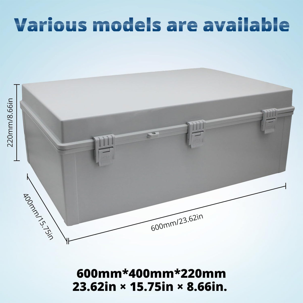 Q: What are the dimensions of the MAKERELE waterproof junction box?A: The dimensions of the MAKERELE waterproof junction box are 23.6 inches in length, 15.7 inches in width, and 8.7 inches in height, making it suitable for various large electronic projects.