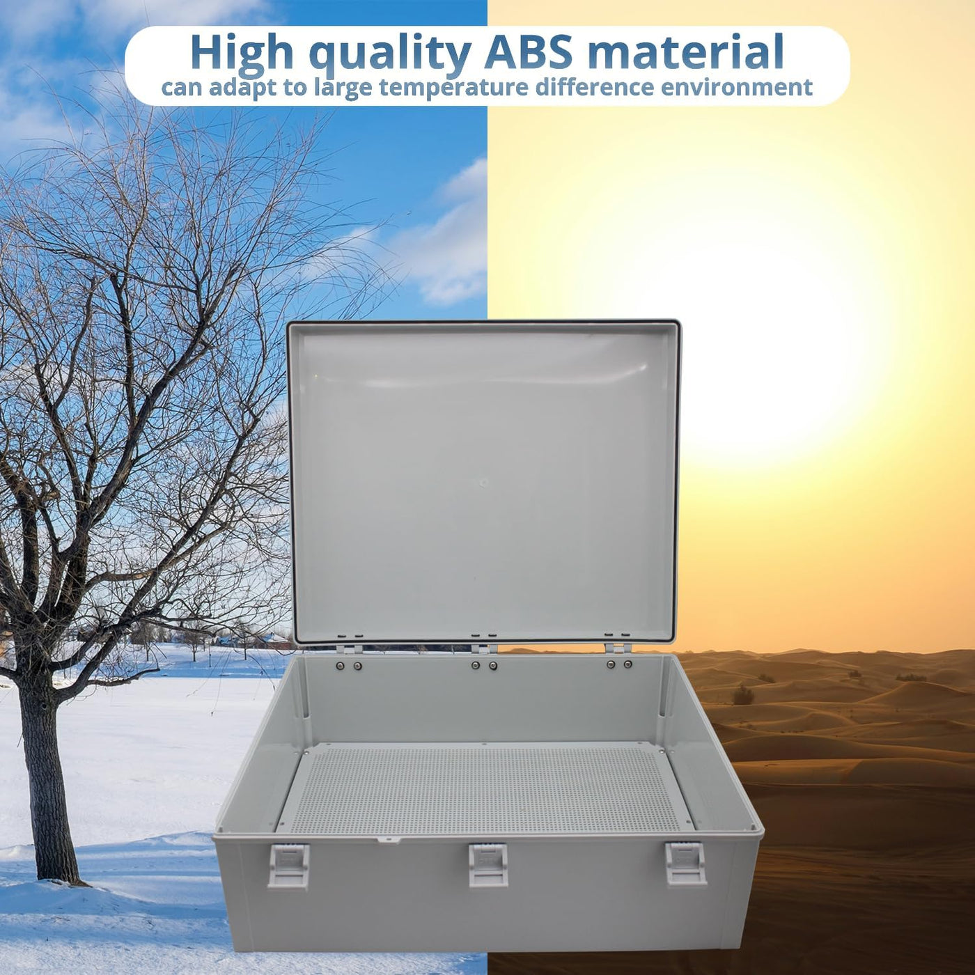 Q: What materials are used in the construction of the MAKERELE junction box?A: The MAKERELE junction box is constructed from high-quality acrylonitrile butadiene styrene (ABS), which ensures durability and resilience against harsh environmental conditions.