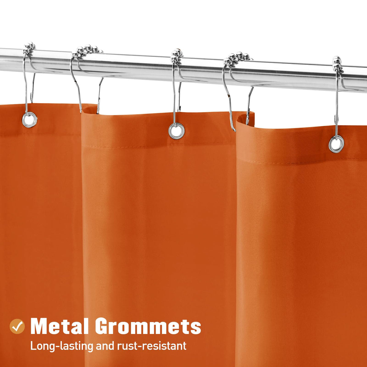Mitovilla Orange Fabric Shower Curtain Liner, Burnt Orange Simple Shower Curtain Or Liner For Terracotta Bathroom Decor, Waterproof Cloth & Machine Washable, 12 Plastic Hooks, 72' W X 72' H