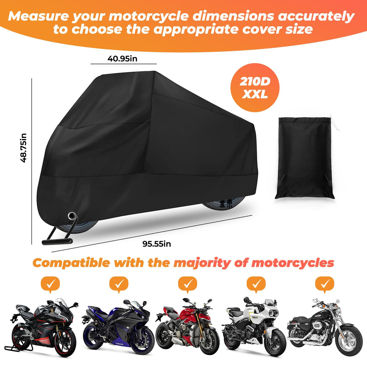 Motorcycle Cover Heavy Duty Waterproof: Durable Waterproof Scooter Cover With Windproof And Security System - Fits Up To 96 Inch Large Motorcycle