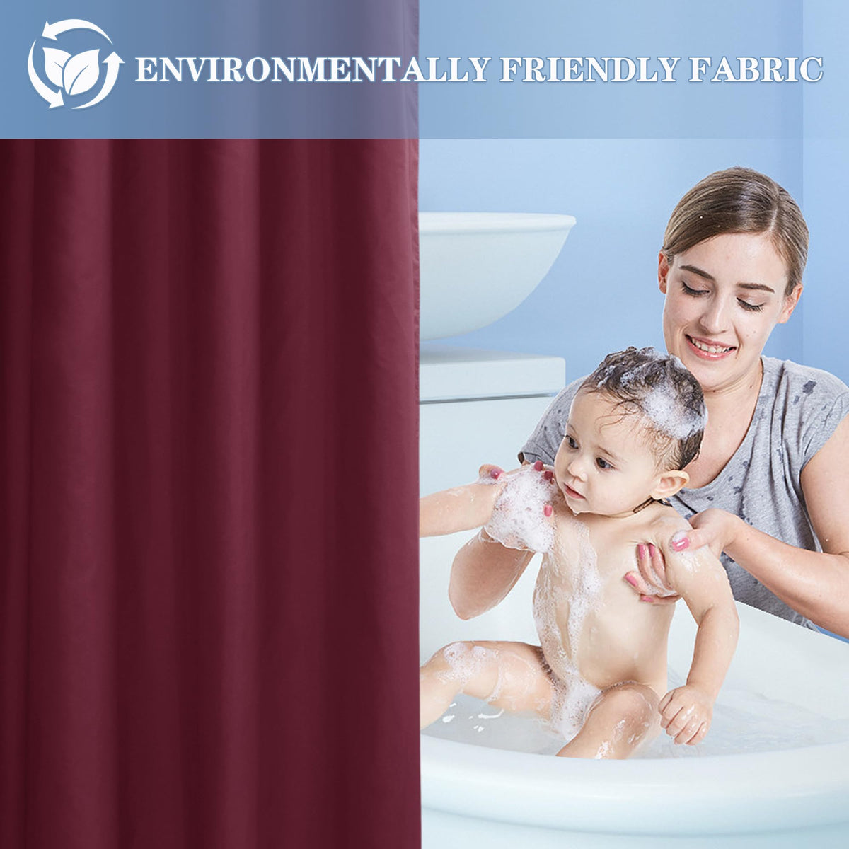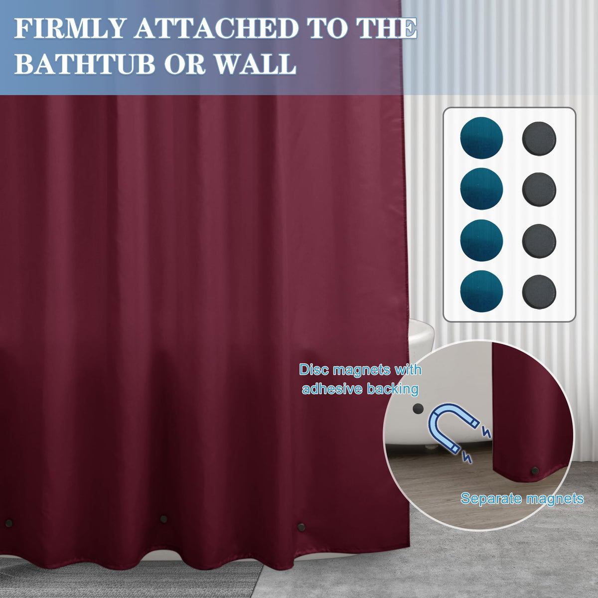 Nasitos Fabric Shower Curtain Liners 2 Pack - W72 X H72 - Washable & Water Resistant Lightweight Cloth Shower Liner For Bathroom, Soft Hotel Quality, Standard Size (Burgundy, 4 Magnets Included)