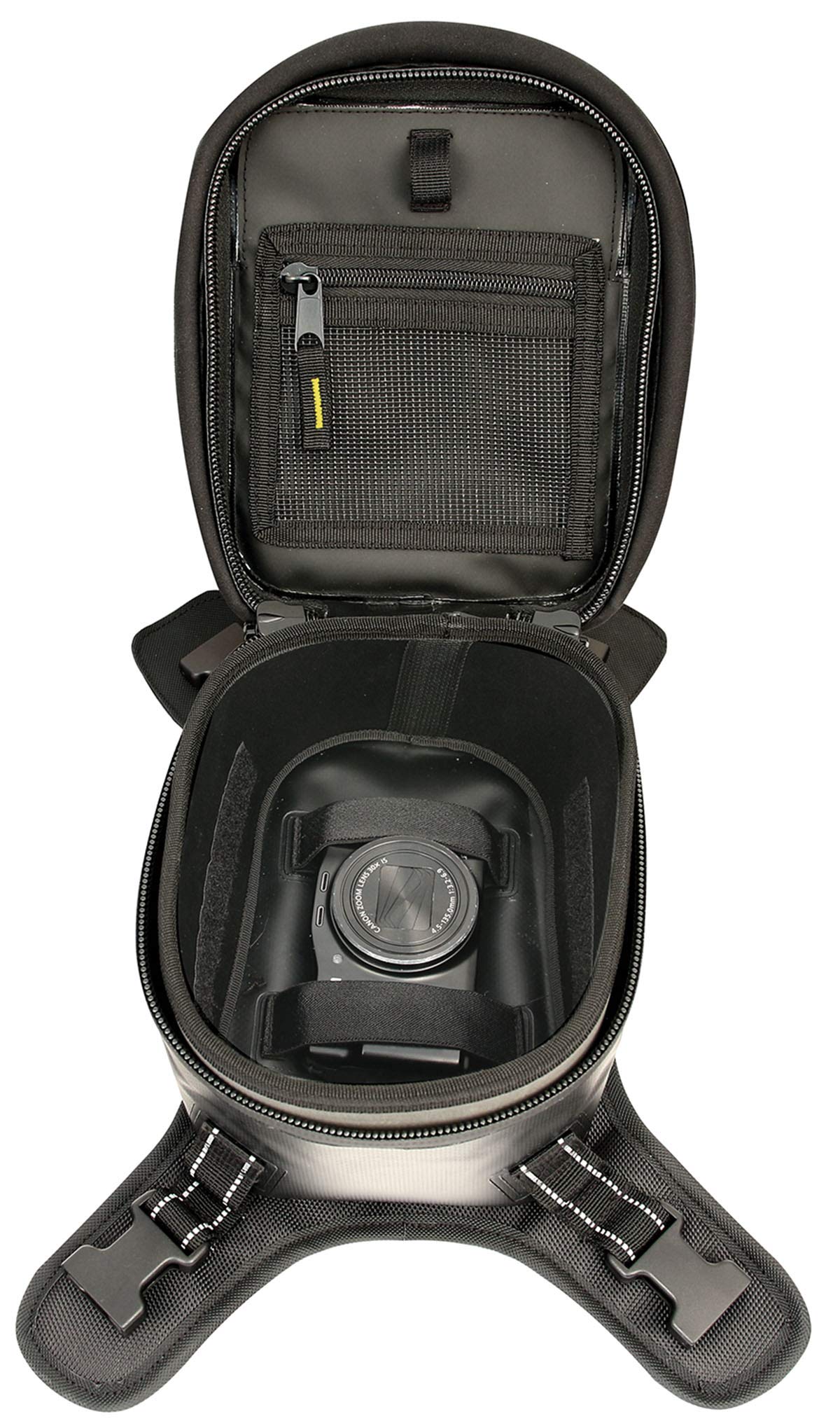 100% Waterproof Pvc Tarpaulin With Electronically Welded Seams. Outer Material Cleans Easily. Smaller Size Is Perfect For Dual Sport And Enduro Bikes. Quick Release Strap System For Easy Attachment And Refueling. Protective Base Material Prevents Slipping Or Marking. Main Compartment Has Elastic Loops In The Base To Help Secure Your Belongings. Waterproof Flap Helps Keep Dust, Dirt And Mud Away From Waterproof Zipper. Bag Maintains Shape And Has Reflective Piping. Clear Touch Screen Device Friendly Top Pocket. Small Mesh Pocket Under Lid. Main Compartment Measures: 8”L X 5”W X 4”H 2. 6L.