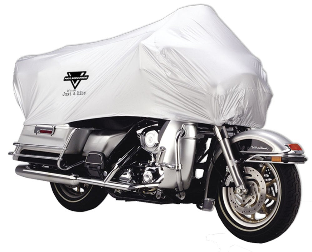 Q: How do I care for and clean the motorcycle cover?A: To clean the Nelson Rigg cover, simply wipe it down with a damp cloth. Avoid using harsh chemicals that may damage the nylon material, and ensure it is completely dry before storing it away.