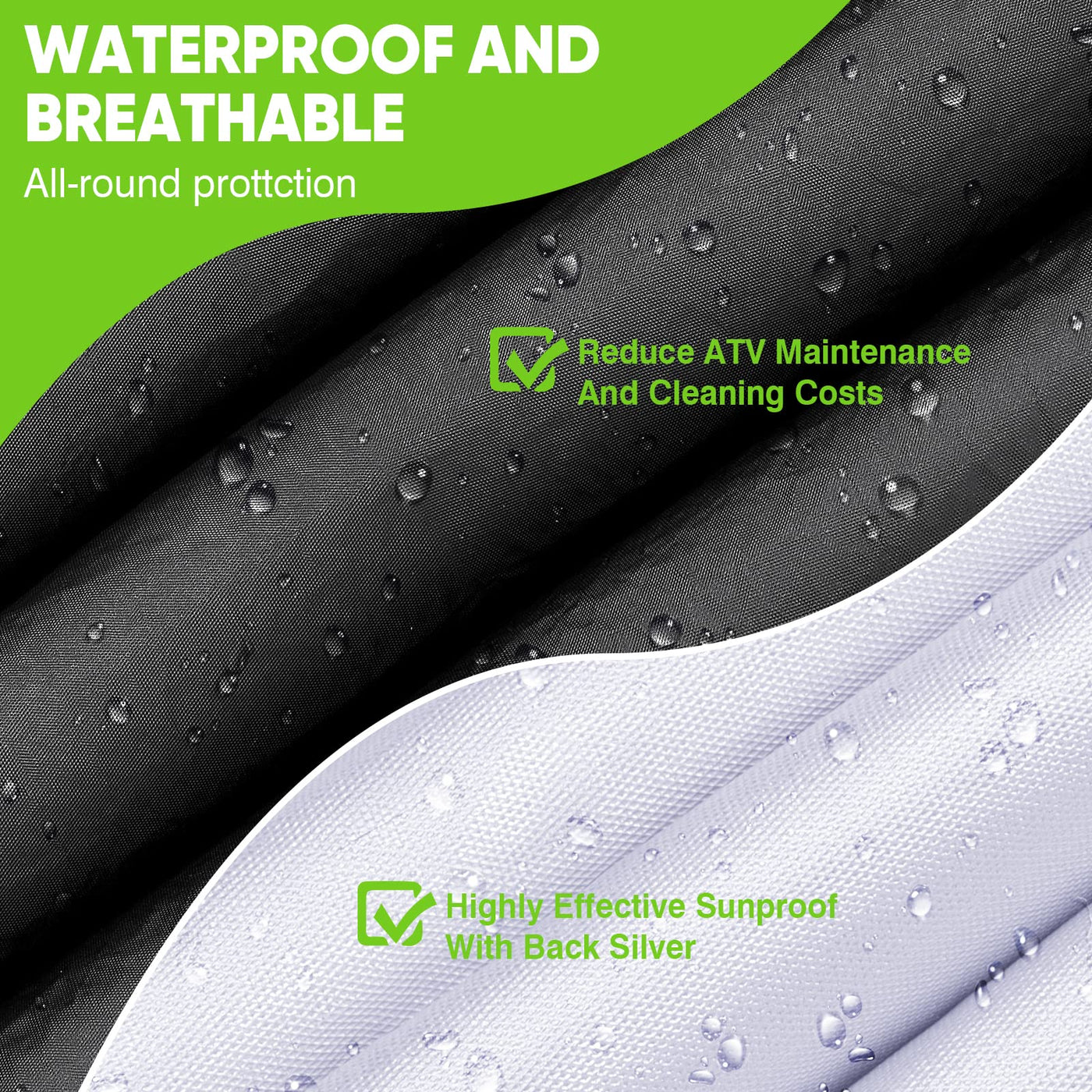 Q: Is the NEVERLAND ATV Cover waterproof?A: Yes, the NEVERLAND ATV Cover features a waterproof design with double thread stitching and a PU coating, ensuring that your ATV remains dry regardless of weather conditions.