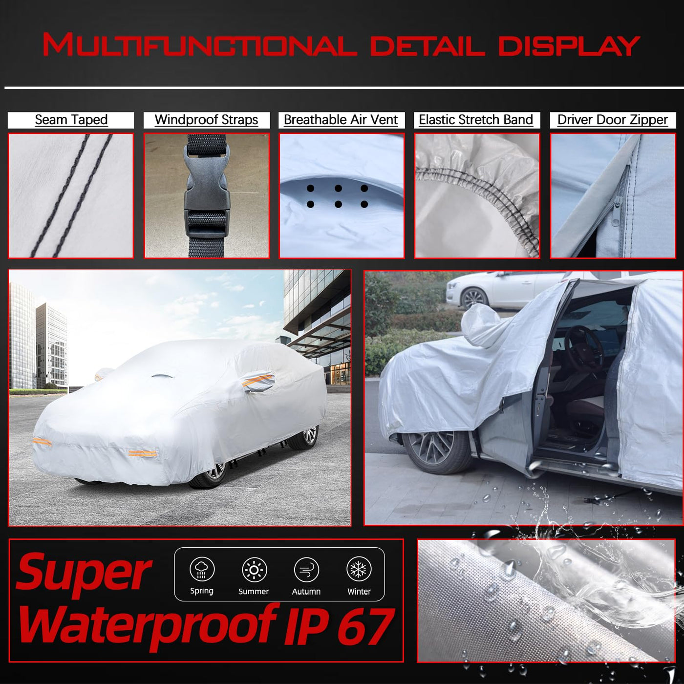 Oweeio 30 Layers Heavy Duty Car Cover For Automobiles All Weather Waterproof, Outdoor Snowproof Uv Protection Windproof, Door Zi