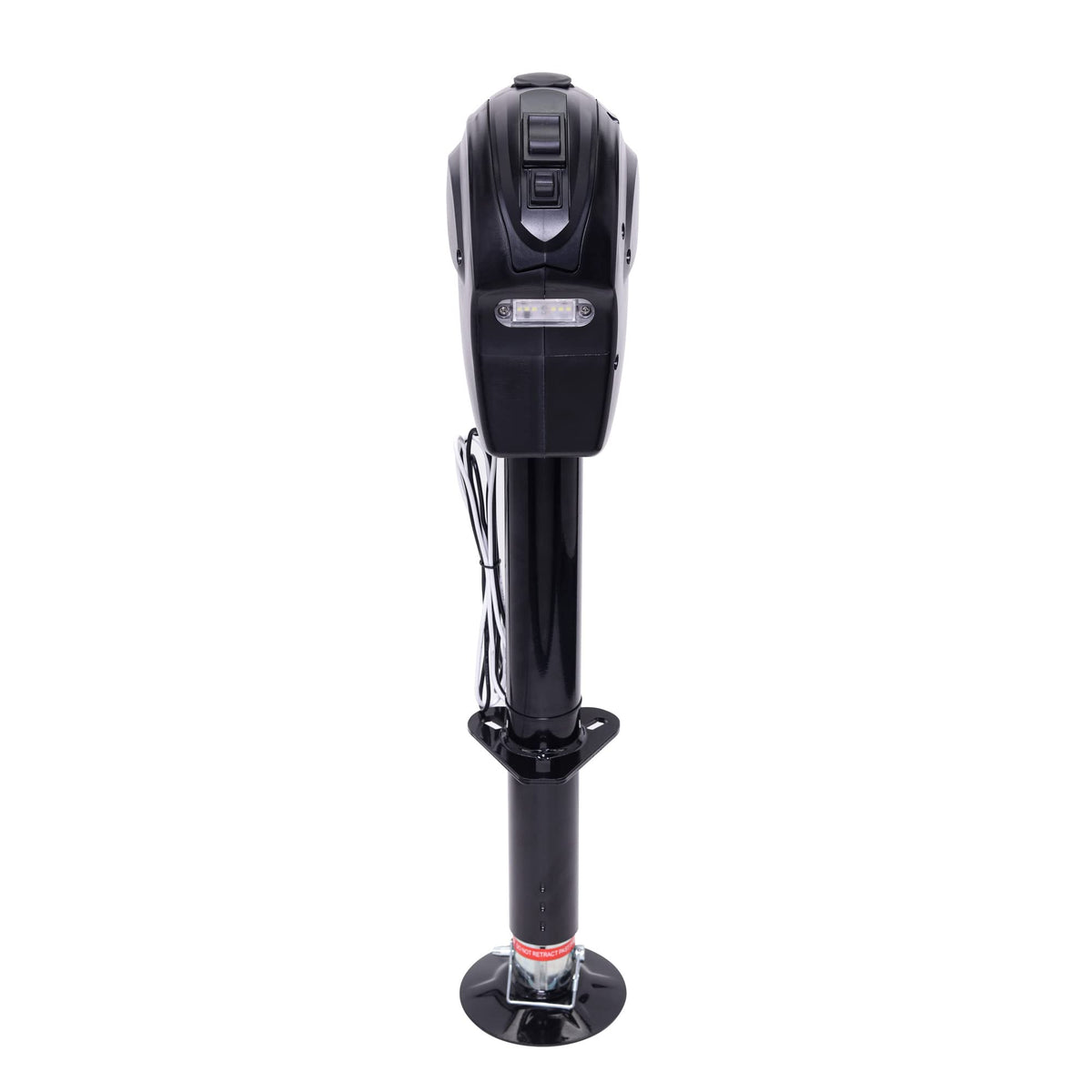 Q: What safety features are included with the electric trailer jack?A: This unit includes a built-in circuit breaker that automatically trips and resets if the amperage exceeds safe levels, ensuring safe operation during use.