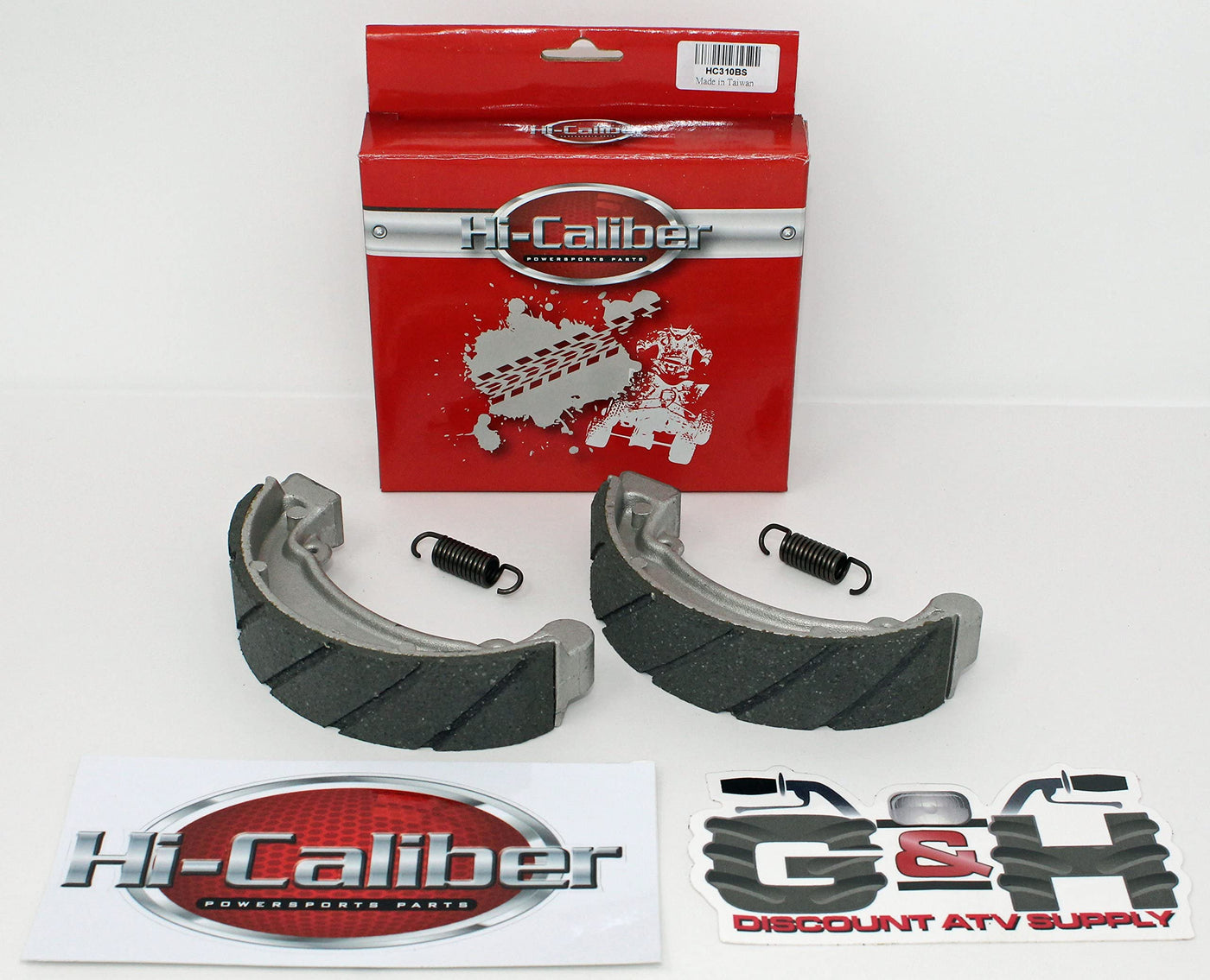 Rear Brake Shoes And Springs For The 1978-1985 Honda Atc 70 Three-Wheel Atvs. Hi-Caliber Powersports Parts Brake Shoes Offer Maximum Performance, Increased Wear Life And Excellent Durability. Hi-Caliber Powersports Parts Parts? Don'T Make The Mistake Of Buying Cheap Quality Parts. These Semi-Metallic Brake Shoes Meet Or Exceed Manufacturer'S Specifications And Contain No Asbestos. Cheaper Quality Shoes Are Made With Standard Metal Powder Mixed Into Their Organic Compounds. Our Quality Brake Shoes Are Comprised Of Advanced Compounds Including Copper, Alloy And Other Metallic Elements. The Advantage Of This Is The Shoes Will Provide Much Better Heat Dissipation, Increased Wear Life, Better Friction Co-Efficiency, Low Dusting, And Excellent Stopping Power. Our Brake Shoes Are Grooved. Grooved Shoes Are Slotted To Better Aid In Channeling Water, Dust And Dirt Away From The Braking Surface. As Brake Shoes Rub Against The Drum, A Small Amount Of Dust Is Generated. The Grooves Are Designed To Help Direct The Dust Away From The Braking Surface Of The Shoes. Our Brake Shoe Sets Include The Brake Springs. With Repetitive Use Over Time, Brake Springs Will Stretch And Weaken. It Is Always Recommended To Change Your Brake Springs When You Change Your Brake Shoes. Our Orders Include One Free G&H Discount Atv Supply & Hi-Caliber Powersports Parts Decal! Please Note: G&H Discount Atv Supply And Hi-Caliber Powersports Parts Are Registered U.S. Trademarks Of G&H Discount Atv Supply, Llc. Unauthorized Use And/Or Duplication Without Written Permission By G&H Discount Atv Supply, Llc Is Strictly Prohibited.
