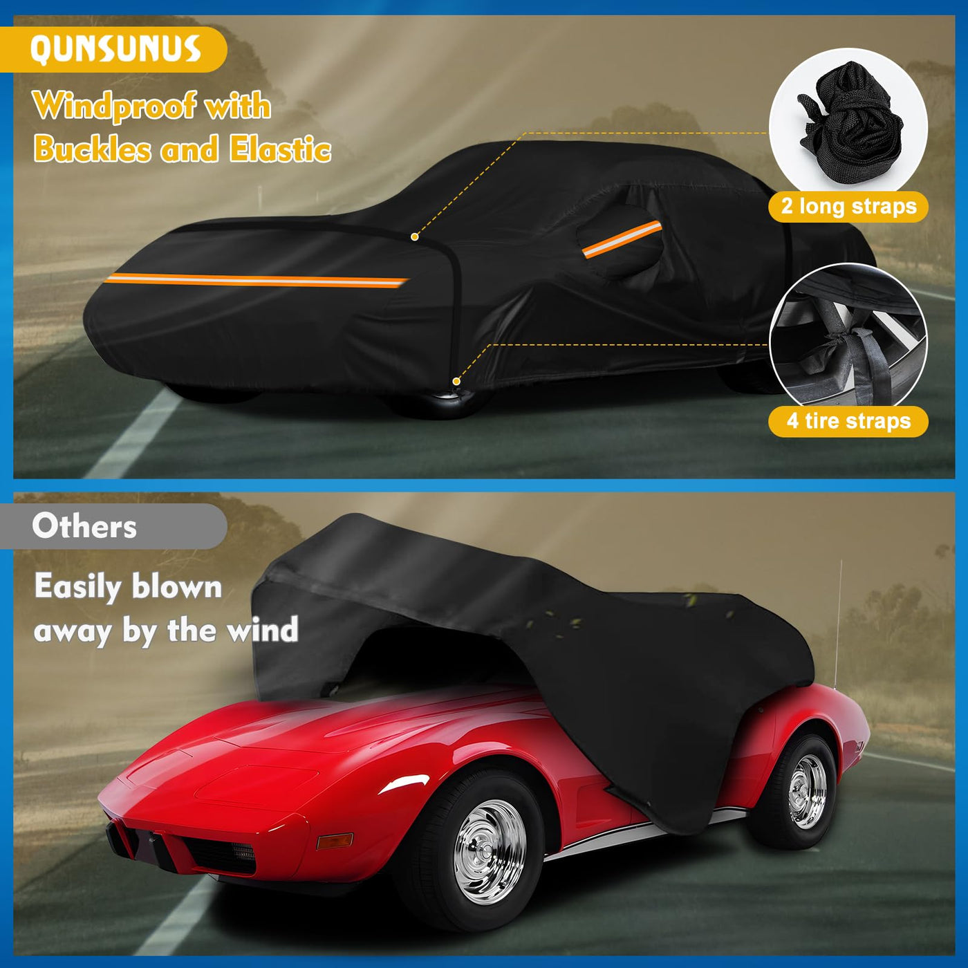 QUNSUNUS 6 Layer Car Cover for C3 Corvette 1968-1982 Waterproof All Weather Windproof for Corvette Car Cover Hail Protection wit