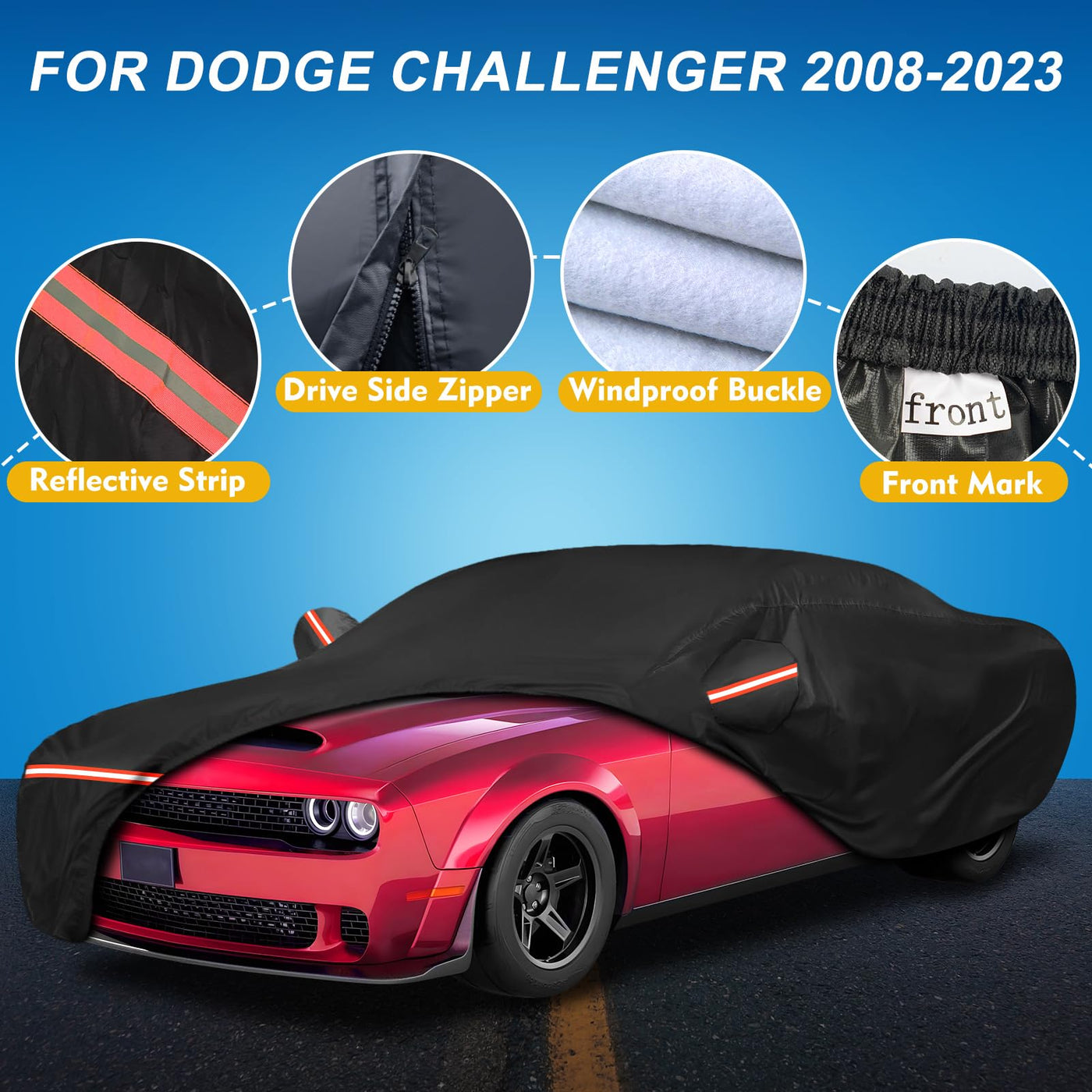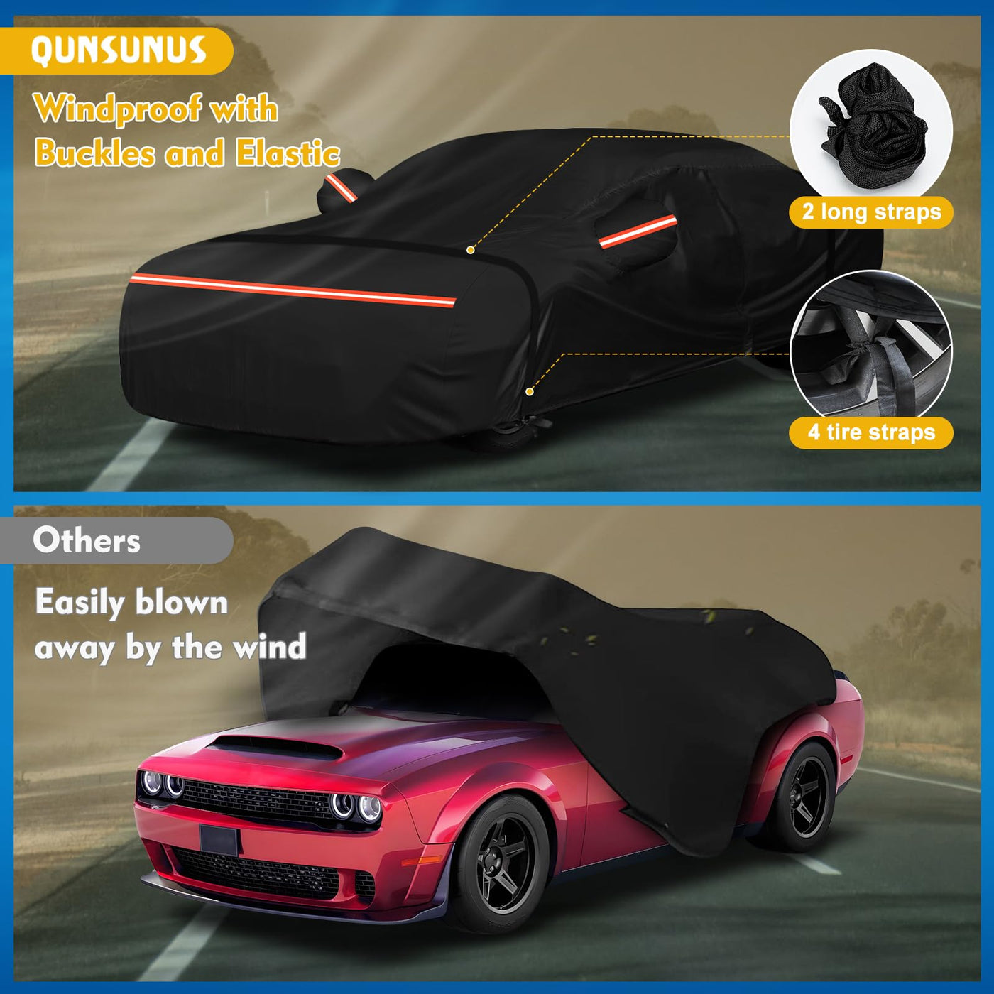 QUNSUNUS 6 Layer Car Cover for Dodge Challenger 2008-2023 Waterproof All Weather Windproof for Dodge Car Cover Hail Protection w