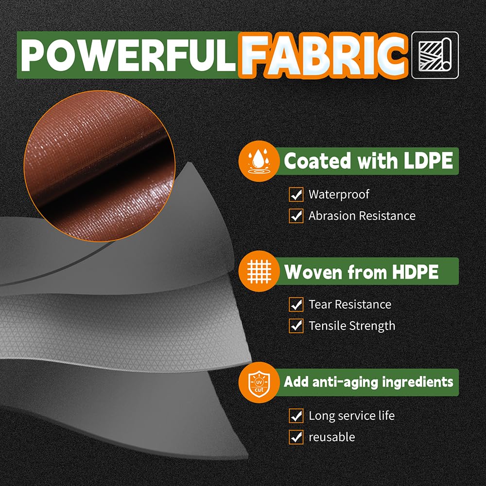 18Mil Thickness Heavy Duty tarp , 8.8oz / sq yard; Metal grommets around the edges for better durability; Brown color design; High quality poly tarp & waterproof tarp;