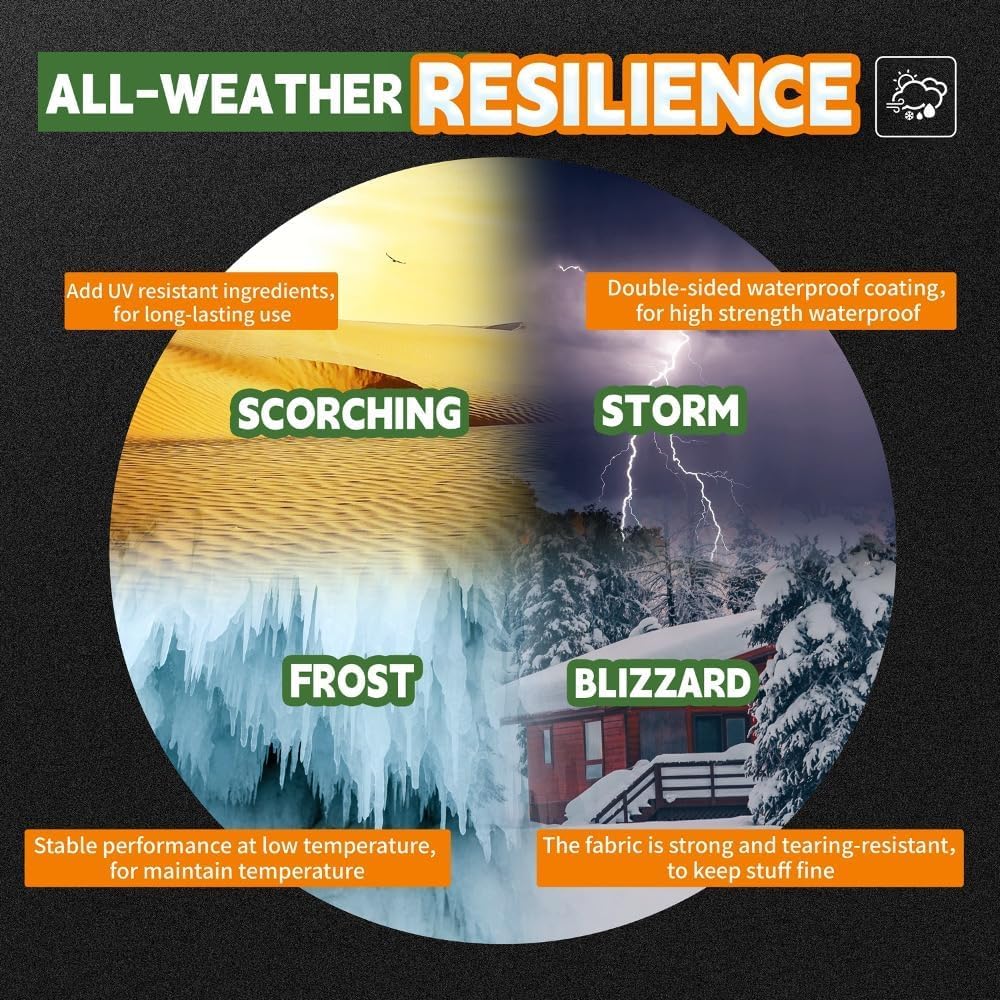 Q: Is the RAINDEWAY tarp UV resistant?A: Yes, the RAINDEWAY tarp is UV resistant, providing protection from harmful sun rays while keeping your items safe from extreme weather conditions.