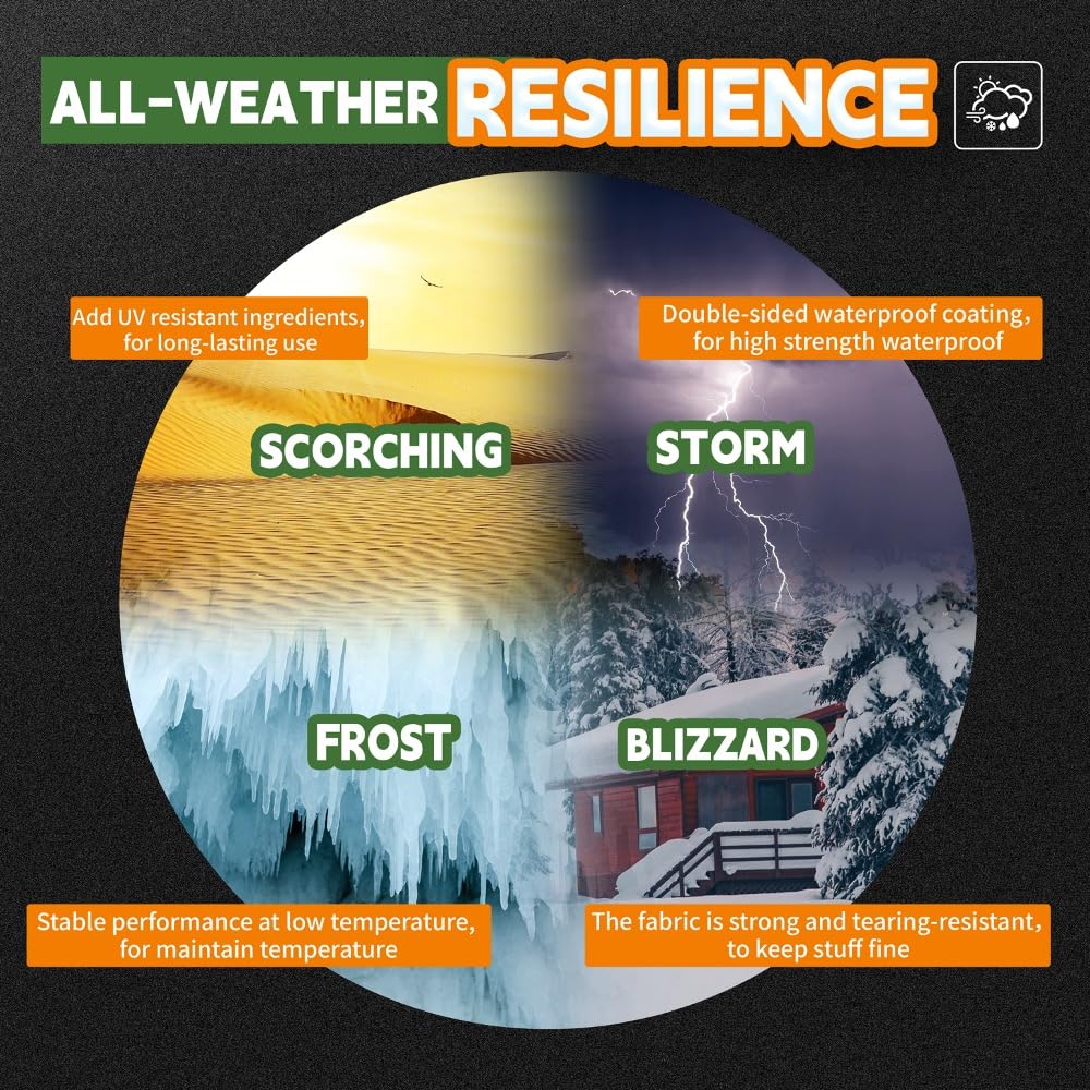 Q: Can I use both sides of the tarp, and what colors are available?A: Absolutely! The tarp features a gray and blue two-color design, allowing you to use either side based on your preference.
