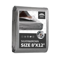 Raindeway Tarps Heavy Duty Waterproof 8X12 Feet, 10Mil Multipurpose Poly Tarp Cover With Metal Grommets Camping Tarpaulin, Silver/Brown Tarp Finished Size