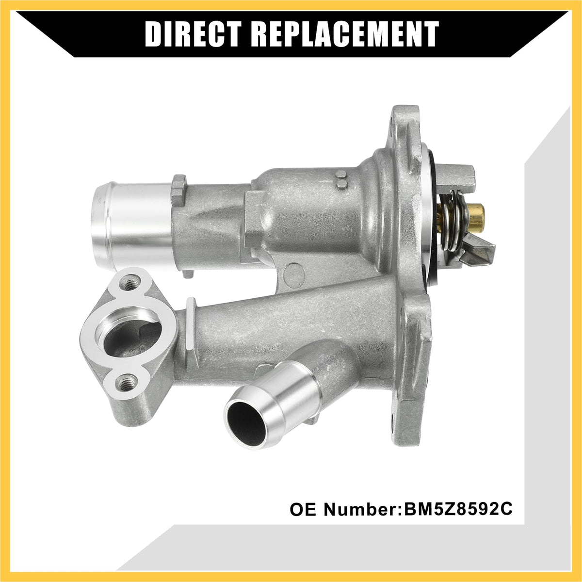 VEHICLE COMPATIBILITY:for Ford Escape 2013-2016for Ford Fusion 2013-2014for Ford Transit Connect 2014-2016for Ford Fiesta 2014-2019PRODUCT INFORMATION:Condition: Brand NewMaterial: AluminumColor: Silver ToneSize: 14.5x14x7.5cm / 5.71''x5.51''x2.95''(L*W*H)PERFORMANCE:Automatically adjust the water yield flowing into the radiator according to the temperature of the cooling water, to ensure that the engine works within the appropriate temperature range.Made of durable material for long service life.Good performance directly replaces the old or broken one.OE Number: BM5Z8592CNOTICE:a. This is a non-OE items, accessory ONLY!b. Please check your car model and refer to our products before purchasing.c. Due to manual measurement, the size deviation is about 1-2 cm.INSTALLATION:DIRECT INSTALL: Direct replace the broken engine coolant thermostat housing assembly.
