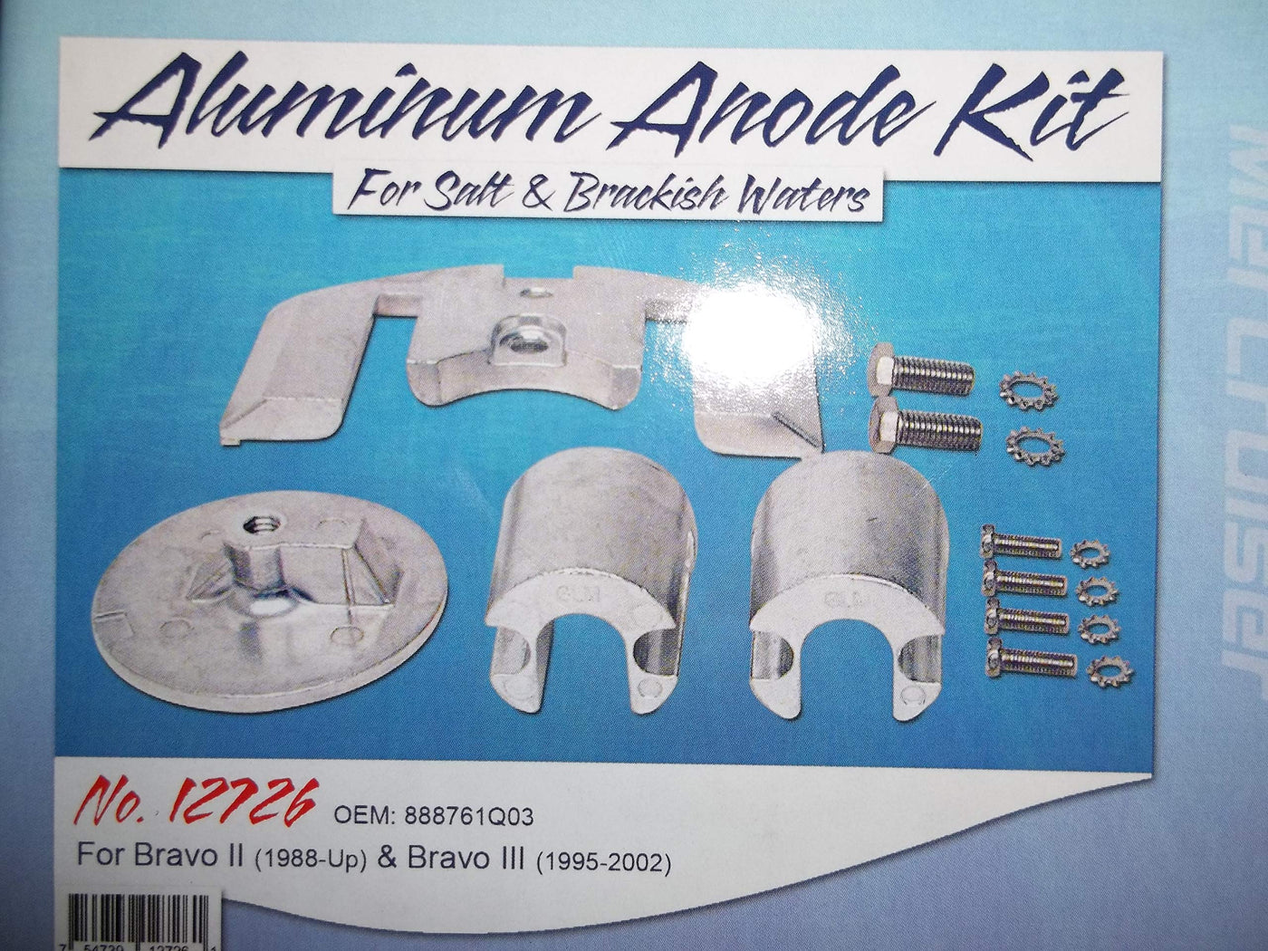 Q: What is included in the RPS-GLM Mercruiser Bravo II III outdrive Anode Kit?A: The kit includes a new aluminum anode designed for Bravo II and III drives, along with new screws and bolts for installation.