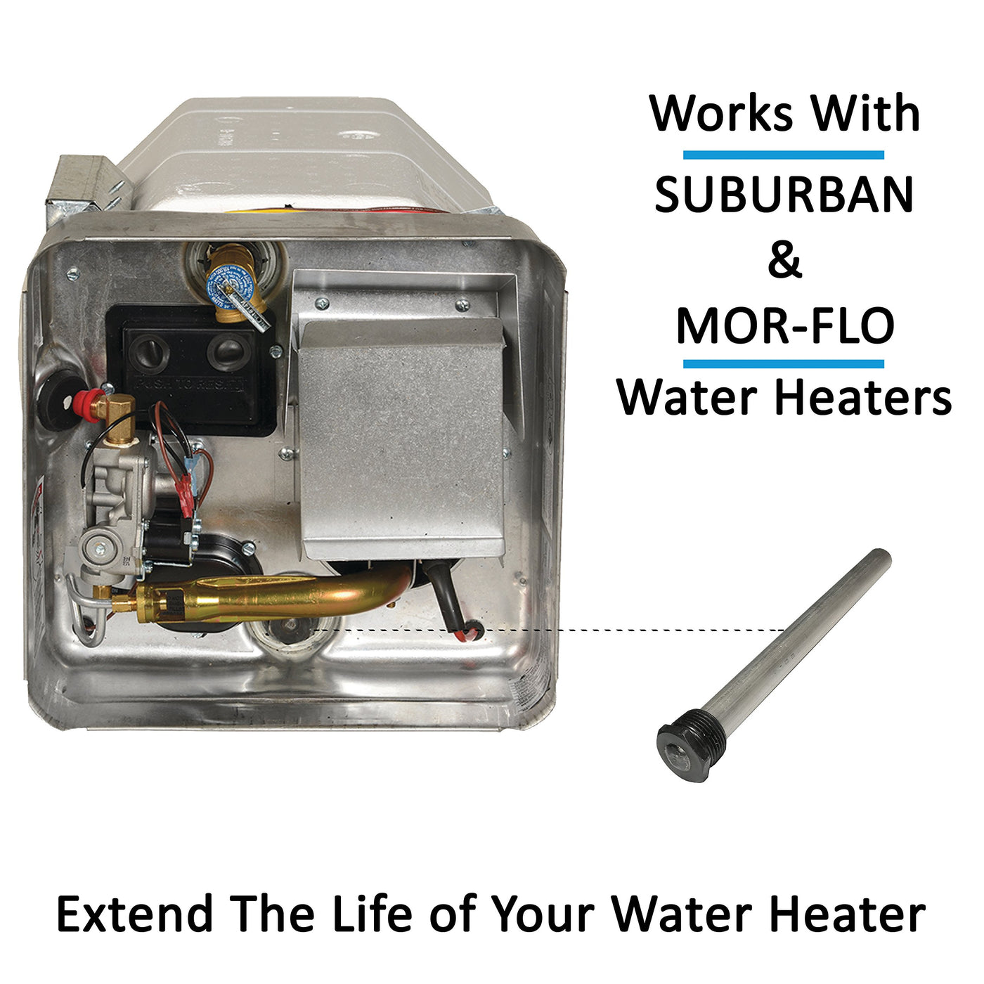 Preserve The Quality & Prolong The Life Of Your Rv Water Heater With Our Premium Anode Rods!Worried About Your Water Heater Tank Being Corroded? Water To Prolong The Tanks Lifespan? If You Want To Prolong The Life Of Your Water Heater Then Its Time To Replace Your Rusty Old Anode Rod!This Water Heater Anode Rod Is Made Using The Highest Quality Magnesium To Provide Long-Lasting Use And Protect Your Water Heater Tank From Corrosion To Ensure It Keeps Running Smoothly For Years To Come.Made To Deliver Unrivaled Quality & Functionalityour Trailer Water Tank Rod Absorbs The Corrosive Action Caused By Hot Water Resulting In A Water Tank That Makes Sure That Your Rvs Water Heater Keeps Running Without You Worrying About It Breaking Down.Why We Use Magnesium? Its Softer And Attracts Harmful Water Deposits Better Than Aluminum Rods Preventing Them From Attacking The Tank To Make Sure It Stays Damage Free And Provides Long-Lasting Use.Why Its Right For You:? Absorbs The Corrosive Action Caused By Hot Water? Prolongs The Life Of Your Water Heater Tank? Made Using High Quality Magnesium For Enhanced Performance ? Compatible With Most Suburban And Mor-Flo 6 Gallon Water Heaters? Prevents Rusting Of Your Rv Water Heaterreplacement Anode Rodthe Outdoor Water Heater Tank Anode Rods Serve A Critical Purpose, But Generally Wears Out After A Few Years Of Faithful Service Which Is Why You Should Purchase A Replacement Water Heater Anode To Let You Make The Switch Easily Without Having To Deal With Low-Quality Anode Rods. Click On The Add To Cart Button Now To Order Today And Make Sure Your Water Heater Stays Rust And Corrosion Free With Our Magnesium Anode Rods.