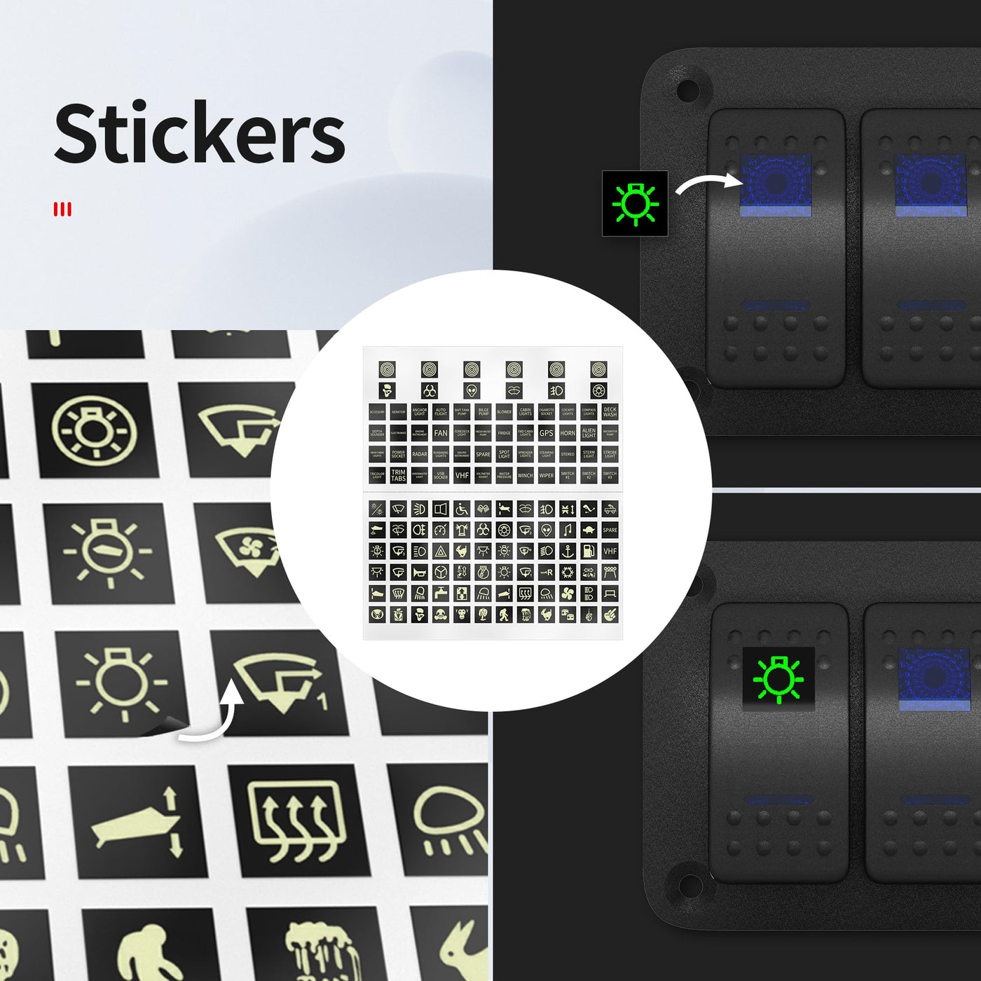 Q: How can I install the RVBOATPAT switch panel?A: Installation is straightforward and includes a set of steel screws and self-adhesive labels for easy identification of each switch. Make sure to follow the wiring diagram provided in the package for proper setup.