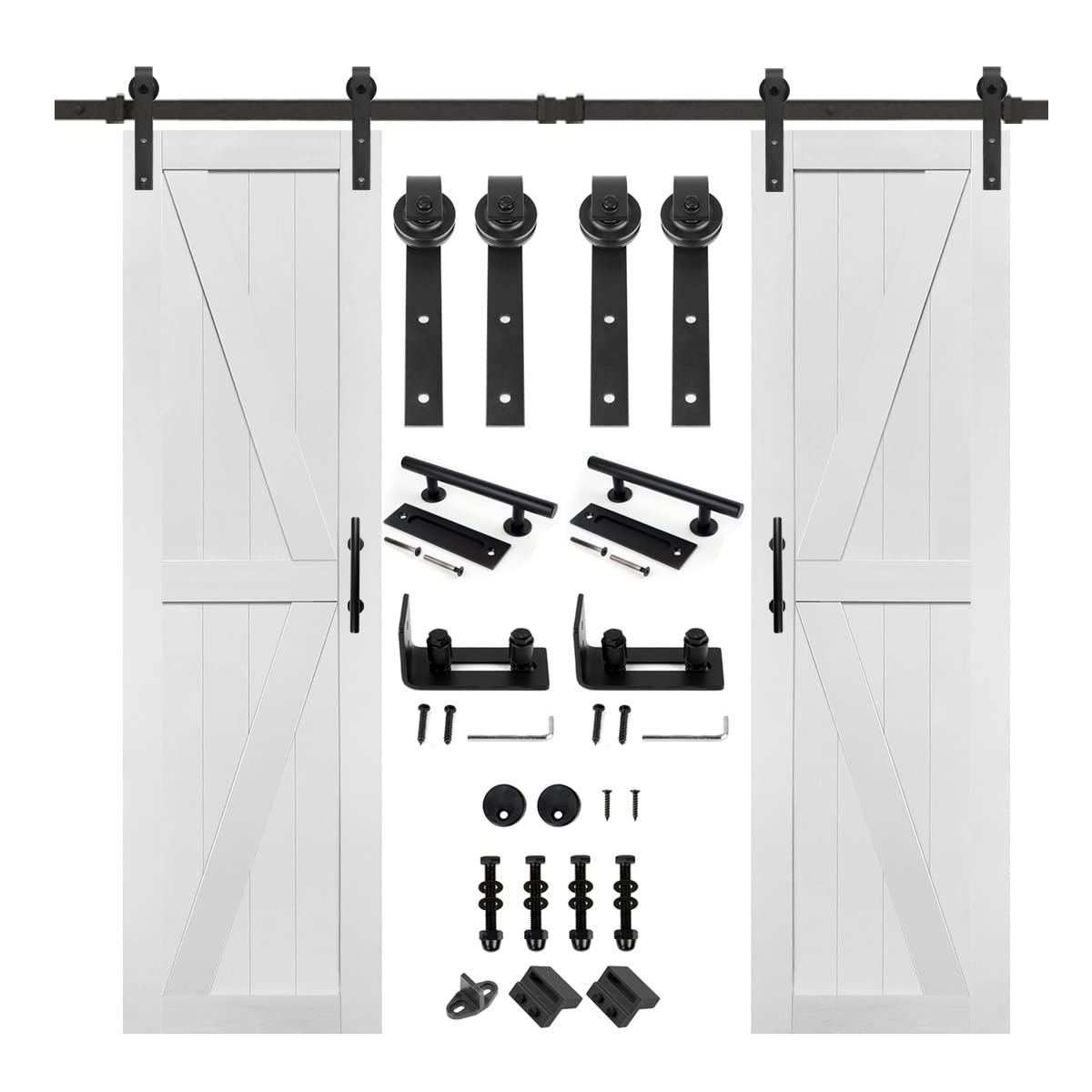 S&Z Tophand® 24In X 84In Mdf Double Barn Door With 8Ft Sliding Door Hardware Kit, Solid Barn Door Slab Covered With Water-Proof Pvc Surface