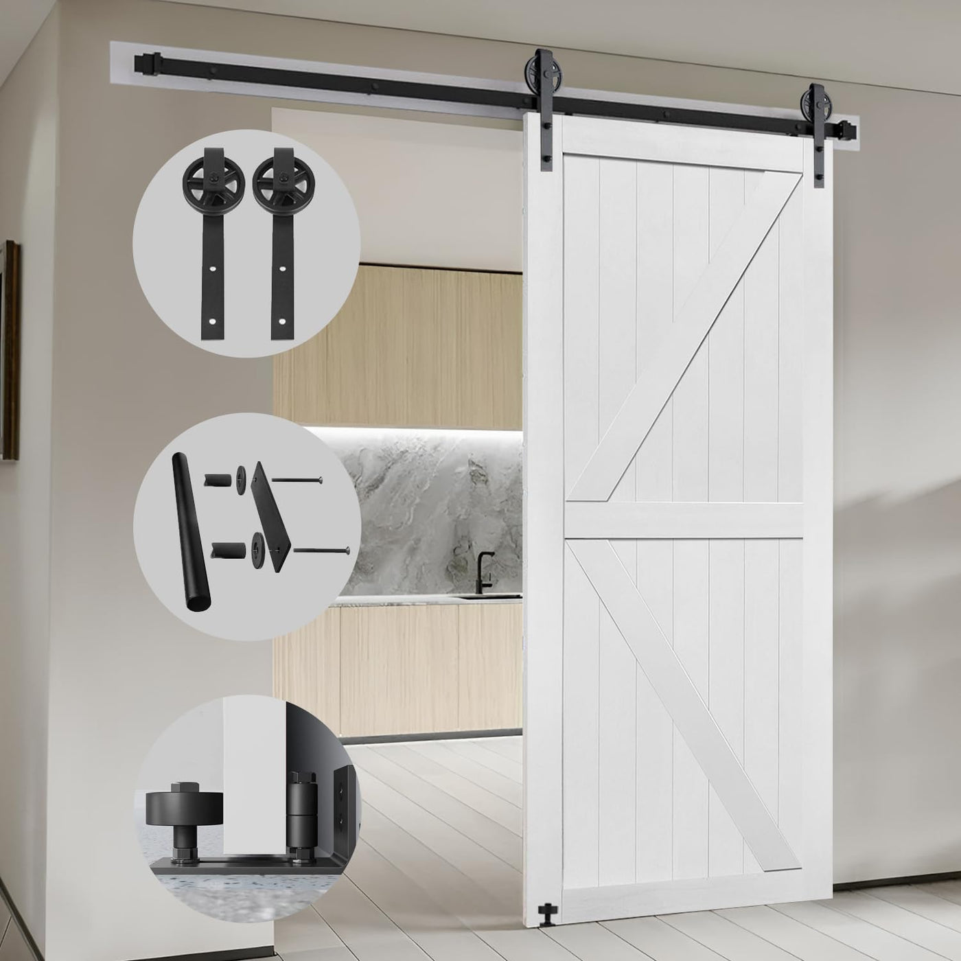 Premium Craftsmanship for Refined Aesthetics: Elevate your interior design with barn door panels crafted from durable MDF material, boasting a fine texture and a simple yet elegant style. Experience optimal thermal insulation and efficient space utilization with these sliding barn doors, perfect for enhancing room decor. | [No Need for Skilled Installation]: The package comprises barn door slats, a sliding hardware kit, a handle, a floor guide, and installation tools, along with detailed instructions. (The door requires assembly) | [Swift Assembly]: You can have a fully assembled barn door kit ready to use in just 60 minutes. | [Waterproof and Scratch-Resistant]: We've designed the door surface with prefinished PVC, ensuring it's waterproof, durable, and easy to clean. The high-quality PVC materials add an extra layer of protection, making it ideal for households with pets. | [Adaptable for Various Spaces]: Whether it's for a study, dining room, or a graceful transition between rooms, our barn doors bring light and elegance to your living space. They combine durability and aesthetic appeal, promising years of enjoyment.