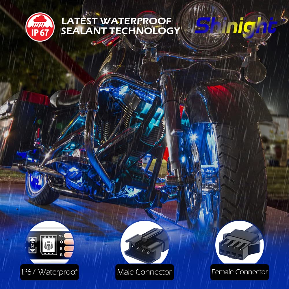 SHINIGHT 10 Pcs Motorcycle LED Light Kits, App Control Multicolor Waterproof Strip Lights with RF Remote, Music Sync & Multiple