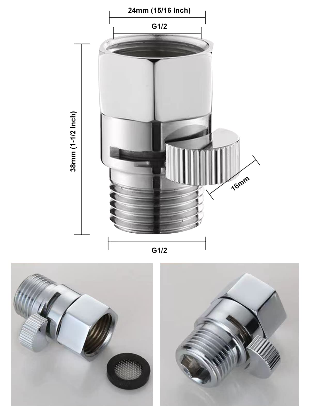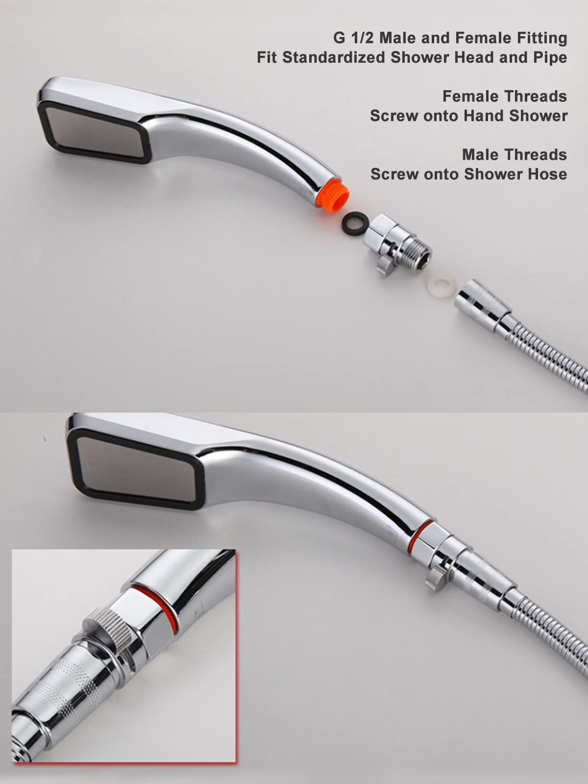 Q: What is the size of the thread on the Shower Head Shut Off Valve?A: The thread size of the Shower Head Shut Off Valve is G1/2 (1/2" NPT), compatible with both female and male connections, making it suitable for most American homes including shower heads and bidet sprays.