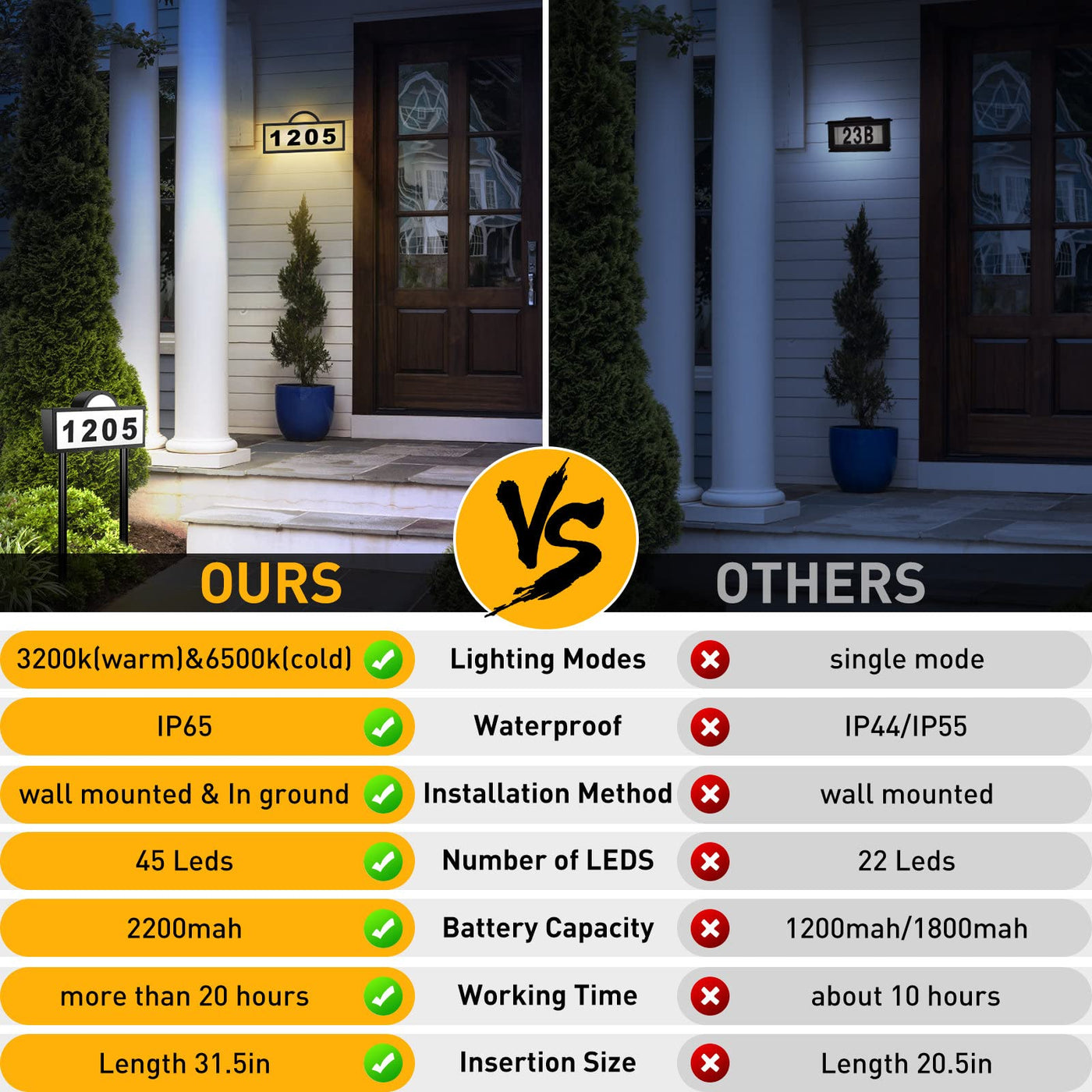 Solar House Numbers Address Sign,Ip65 Waterproof Solar Address Plaque For Outside,3200K Warm & 6500K Cold Led Illuminated House Numbers For Outdoor Wall Mounted & Home Yard Ground Address Number