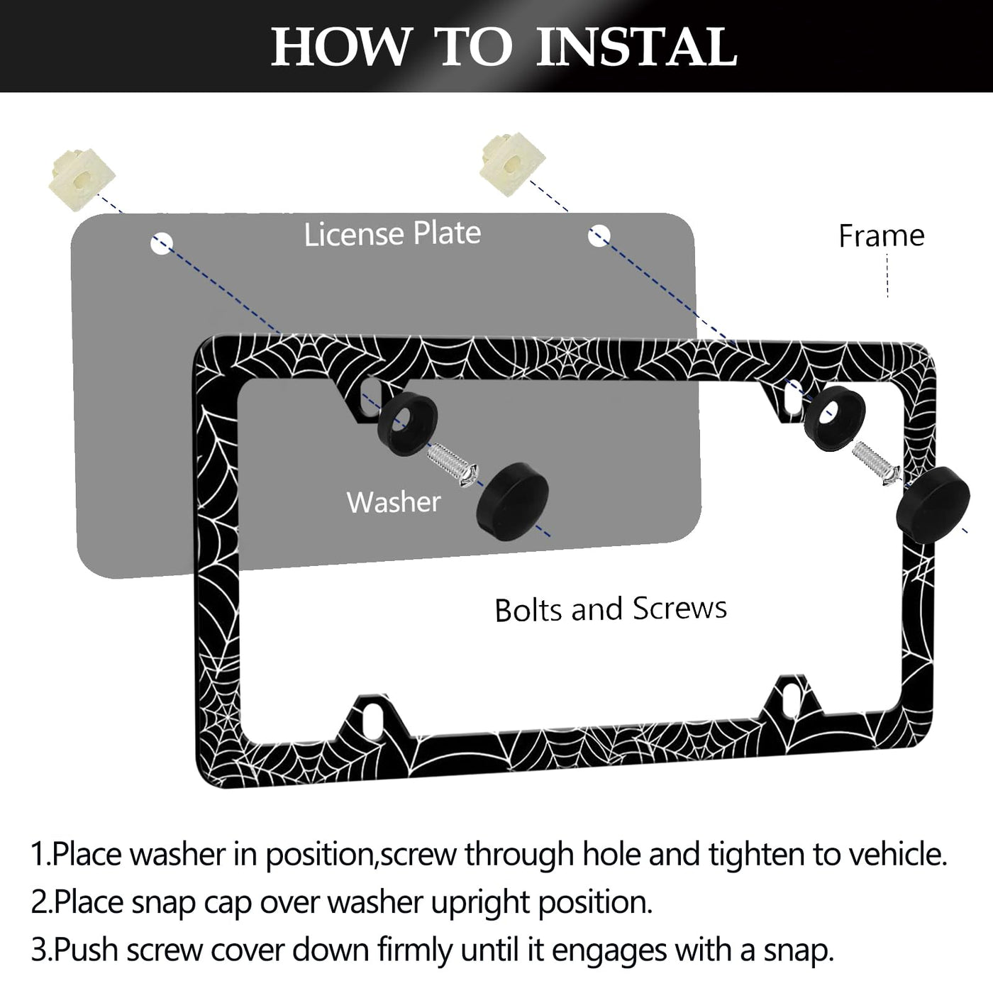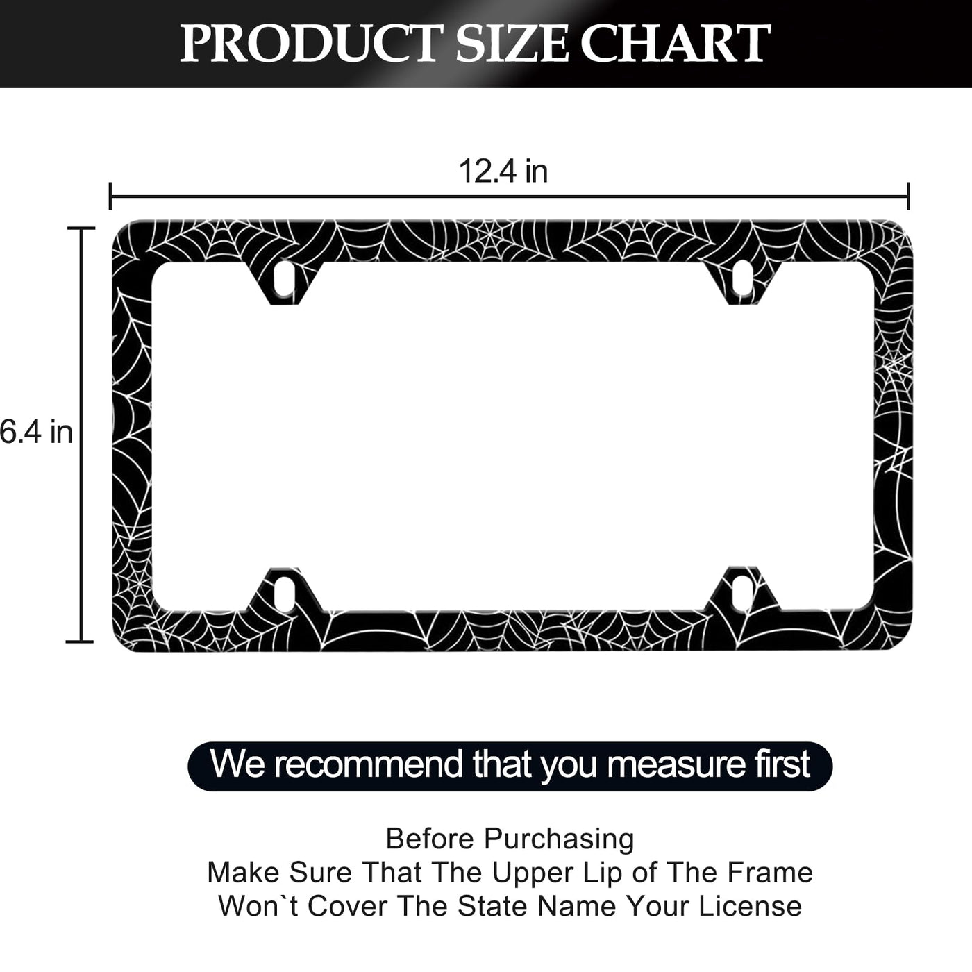 Spider Web License Plate Frame - 2 PCS Goth Gothic Web Aluminum Metal License Plate Frames Holder Covers, Rust-Proof Waterproof