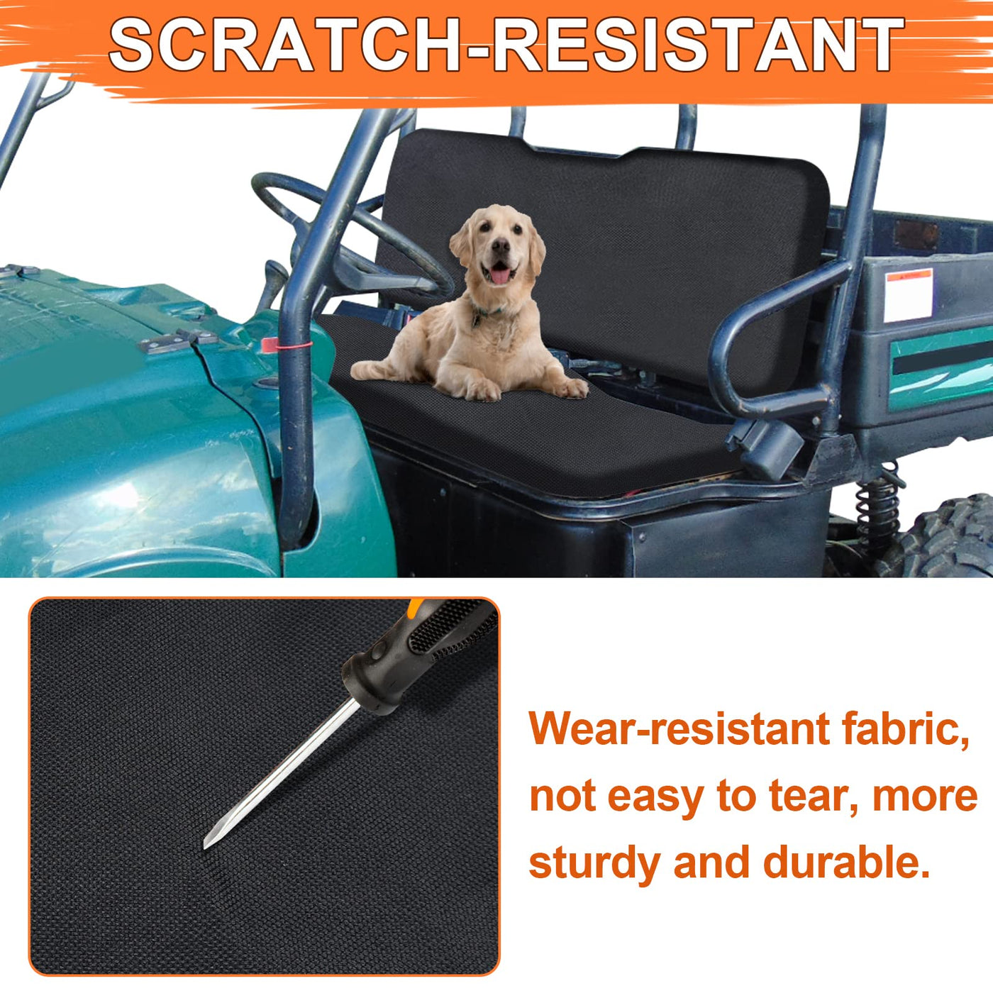 Q: What materials are used in the construction of the seat cover?A: The seat cover is made from durable 1680D oxford fabric that features a waterproof PU coating, providing effective protection against water, dirt, and wear.