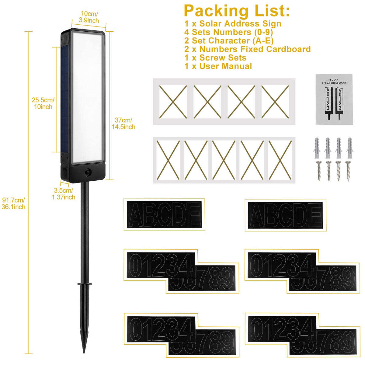 Q: Can I customize the address numbers on the T-SUN Solar Address Sign?A: Yes, the T-SUN Solar Address Sign comes with 4 sets of numbers (0-9) and 2 sets of letters (A-E), allowing you to customize your address. It also includes templates for easy placement and alignment of the numbers.
