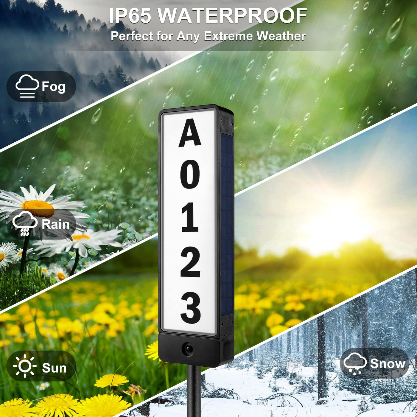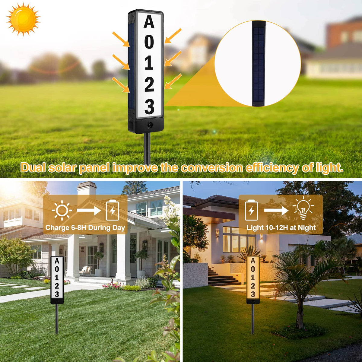T-SUN Solar Address Sign, Vertical Address Numbers, Solar House Number Sign, IP65 Waterproof Warm/Cold White Lighted House Numbers LED Solar Powered Address Plaques for Driveway Marker Home Yard Street Lawn