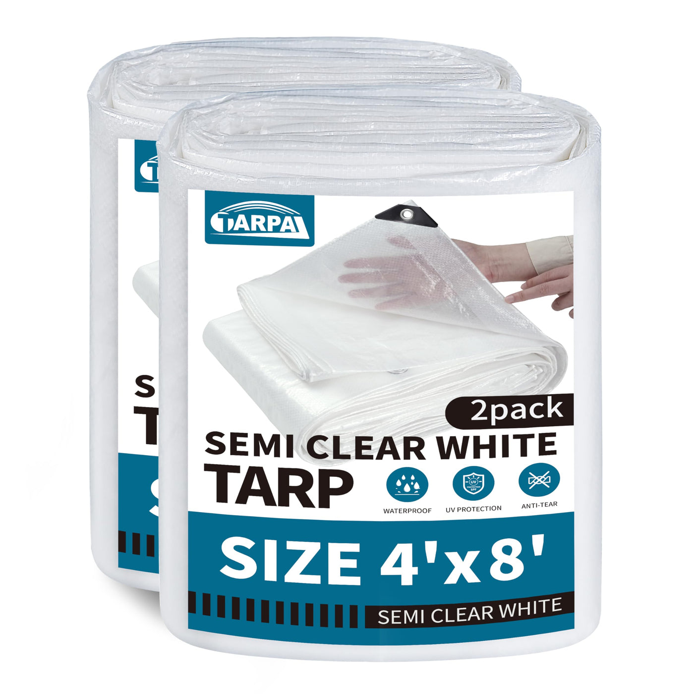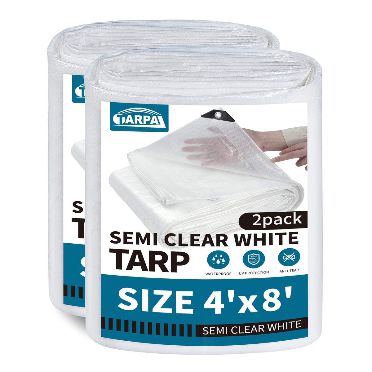 Tarpal 4'X8'(2Pack) Semi Clear White Tarp Waterproof Green House Cover With Grommets 7.5Mil Clear Poly Tarps For Gardening,Farm, Garden,Chicken Coops,Outdoor