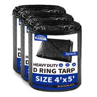 Tarpal Tarp 4X5 Feet (3Pack) Heavy Duty Tarps 14Mil D-Ring Waterproof Tarp For Outdoors Uv Protection Triangular Sewing Design Reinforced Corners And Edges(Black)