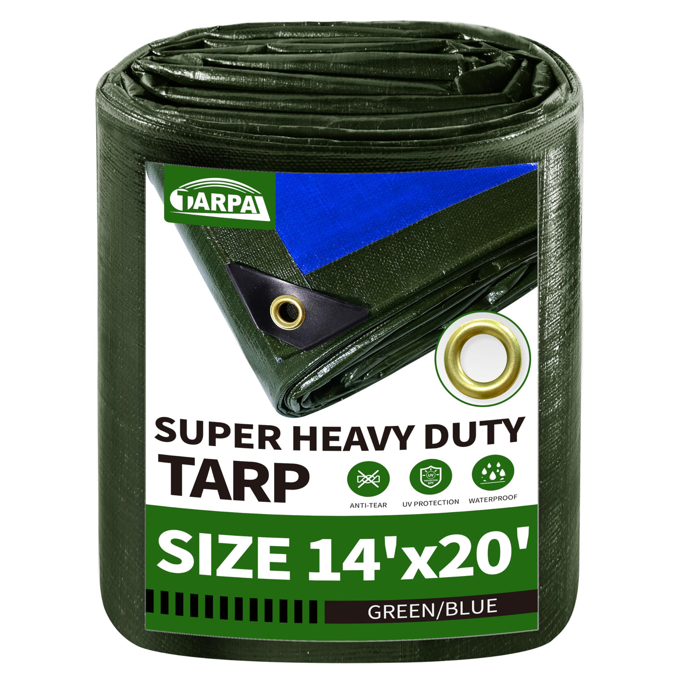 Q: What sizes are available for the TARPAL Heavy Duty Tarp?A: The TARPAL Heavy Duty Tarp is available in a finished size of 14x20 feet. This size ensures you have ample coverage for your needs, and the tarp can be used on both sides, with one side green and the other blue, providing flexibility based on your requirements.